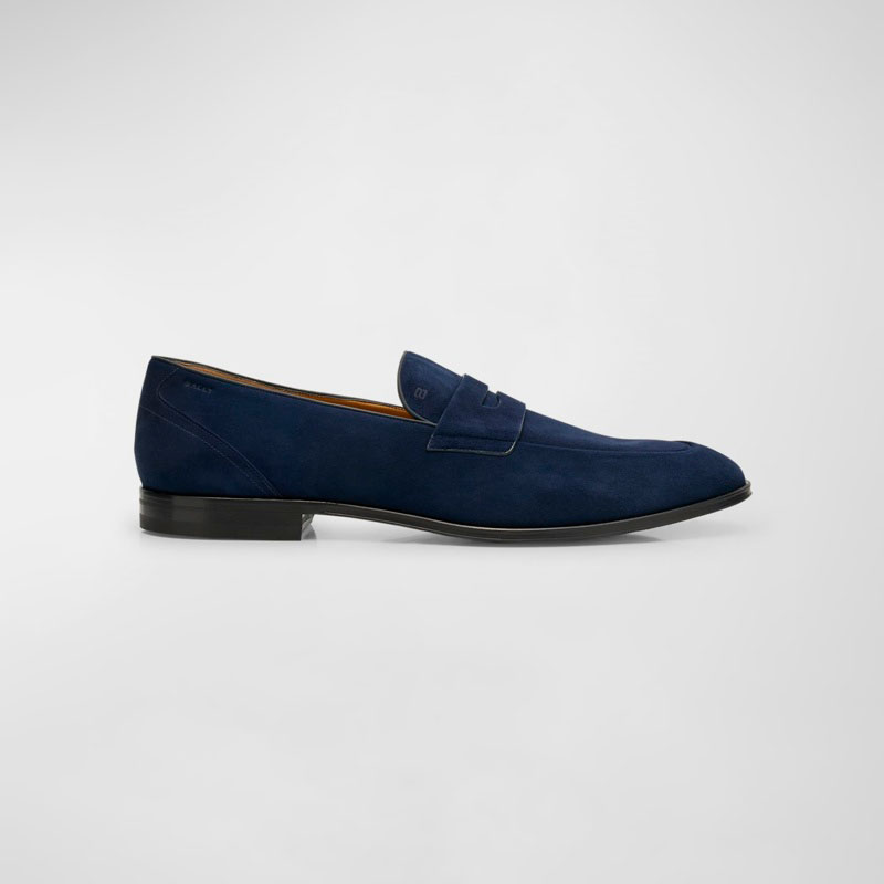 Bally Windsor Suede penny assinatura de estilo que conecta alfaiataria e casual sofisticado. Um par que vai do cotidiano à agenda de viagens com autoridade.