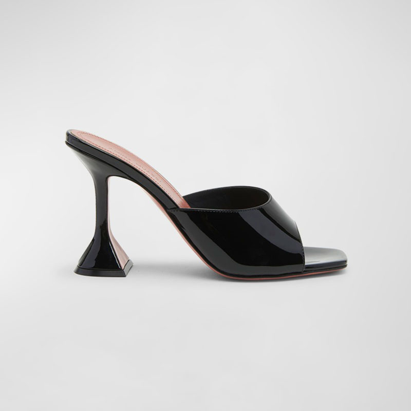 Amina Muaddi apresenta a Lupita Patent, sandália feminina criada para alongar a silhueta com elegância. O design revela assinatura de design da marca. Pensada para coquetéis, eventos e jantares, também atualiza jeans e alfaiataria com refinamento instantâneo.