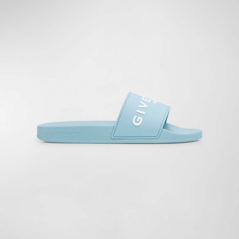 Givenchy Leather Logo slide assina um modelo versátil que conecta lazer e smart casual, consolidando um visual polido para dias ensolarados.