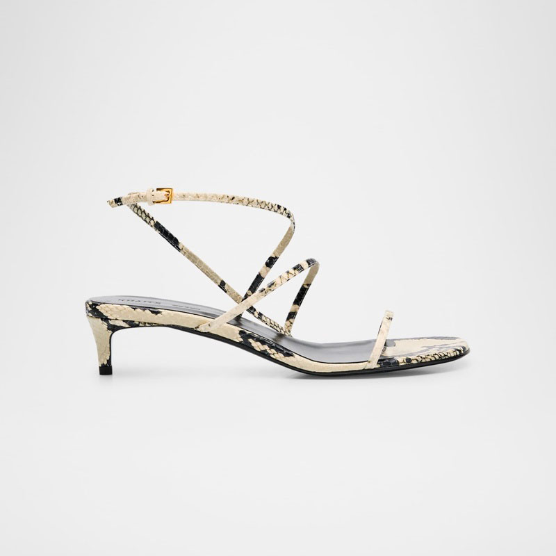 Khaite Strappy Python-Embossed gatinho eleva o repertório casual-chic com elegância natural. A peça revela um olhar contemporâneo sobre sandálias de luxo, em equilíbrio entre delicadeza e atitude.
