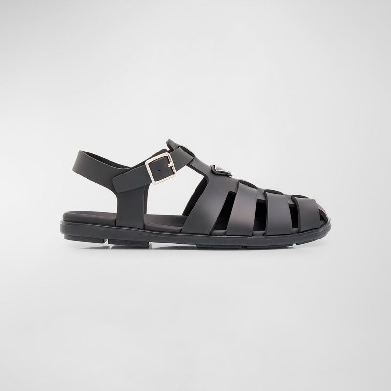 Prada Leather Fisherman assina um modelo versátil que conecta lazer e smart casual, consolidando um visual polido para dias ensolarados.
