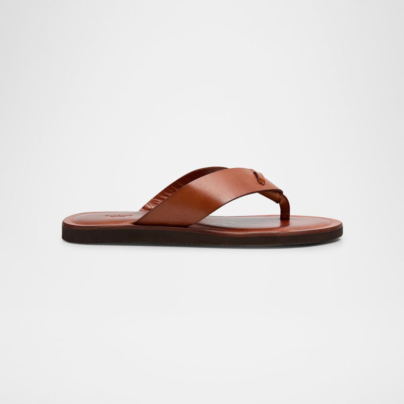 Paul Stuart Damascus Flip-Flops traduz o espírito resort em linhas contemporâneas e materiais nobres, consolidando um visual polido para dias ensolarados.