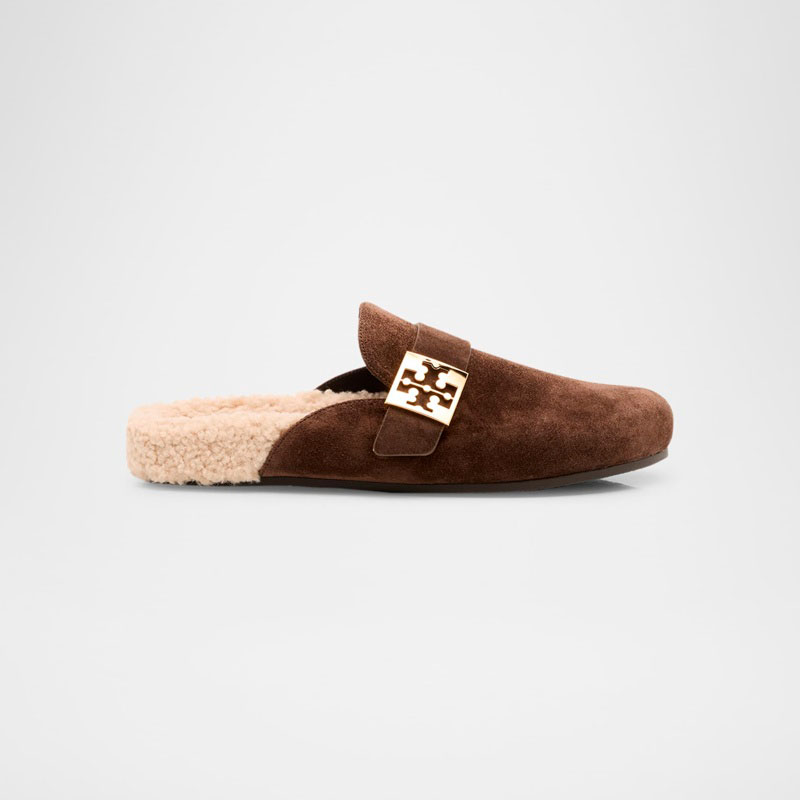 Tory Burch Mellow Suede Shearling redefine o essencial com leveza e linhas puras.