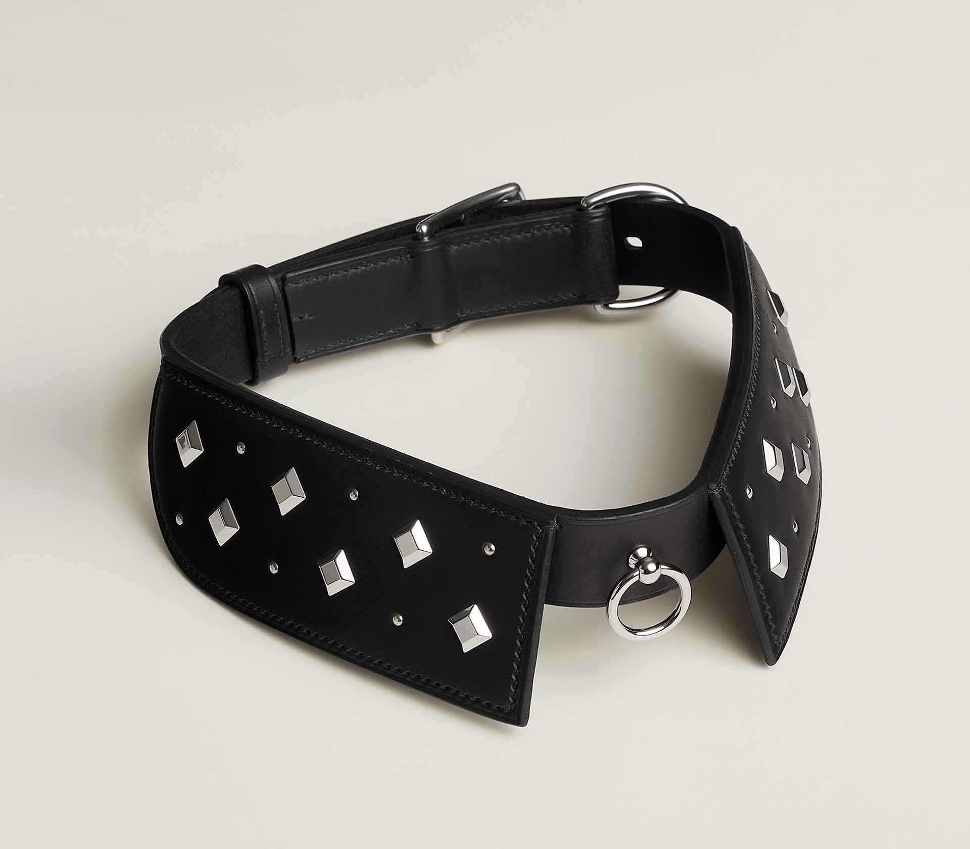 Coleira de cachorro moderna prestando homenagem à coleção Emile Hermès: