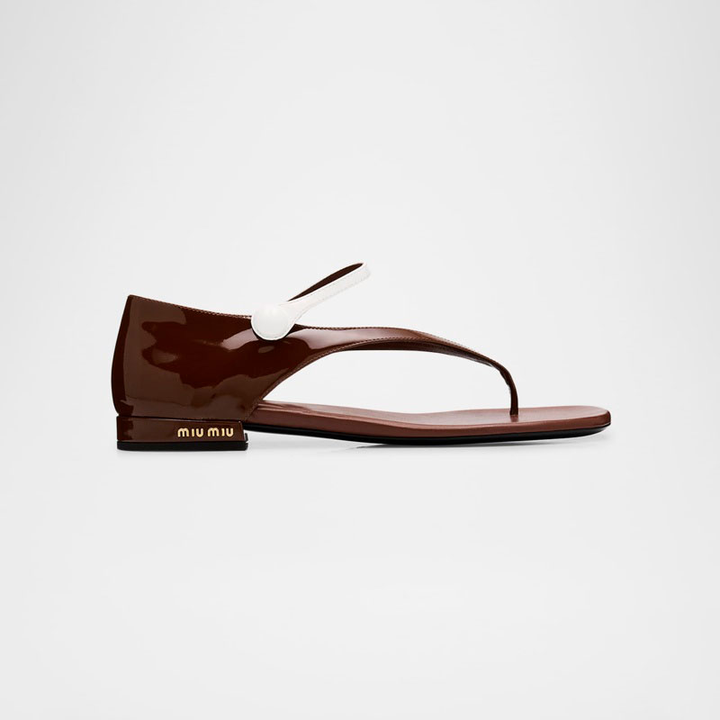 Miu Miu Bicolor Mary Jane Thong propõe um minimalismo sensorial que privilegia textura e movimento. A peça revela um olhar contemporâneo sobre sandálias de luxo, em equilíbrio entre delicadeza e atitude.