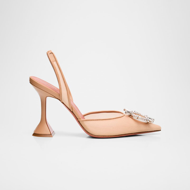 Amina Muaddi apresenta o Begum Nylon Crystal Ornament, scarpin/salto alto pensado para alongar a silhueta com sofisticação. O design evidencia salto geométrico/facetado de assinatura. Perfeito para festas, jantares e ocasiões especiais, também atualiza a alfaiataria e o denim escuro com elegância imediata.