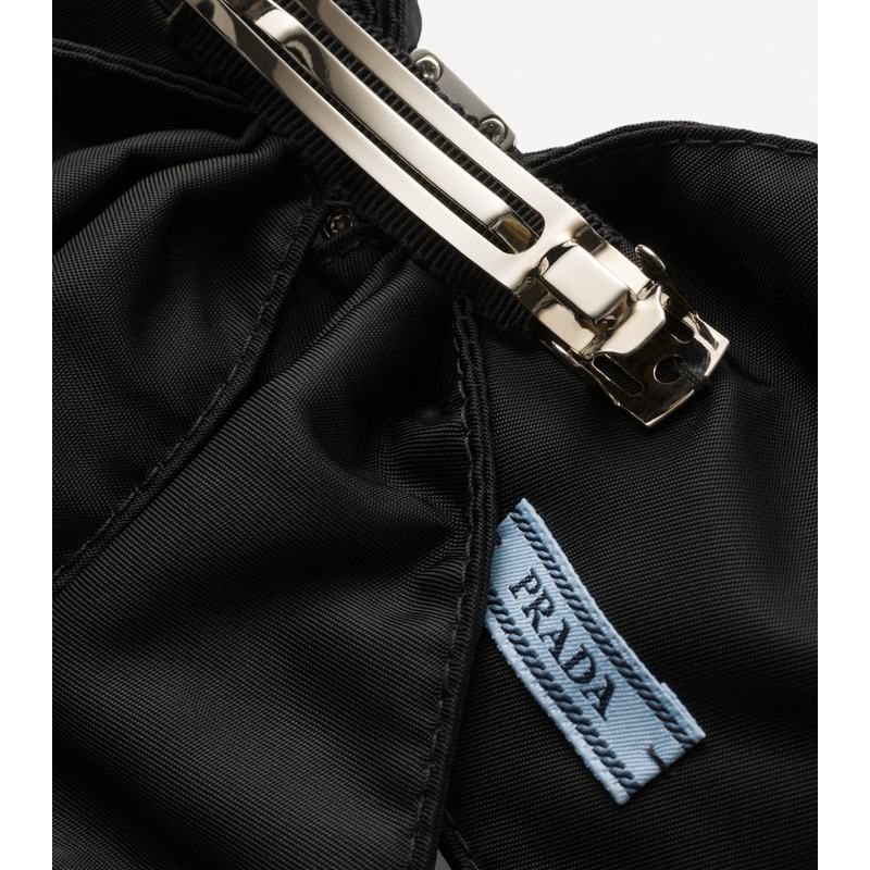 Projetado para oferecer um ajuste seguro e confortável, o grampo Re-Nylon é leve e durável, refletindo o compromisso da Prada com a sustentabilidade sem sacrificar a estética. Os detalhes cravejados adicionam um brilho sutil que captura a luz, tornando esta peça um destaque em qualquer coleção de acessórios. Com este grampo, a Prada convida você a abraçar o futuro do luxo, com um toque de ousadia e sofisticação.