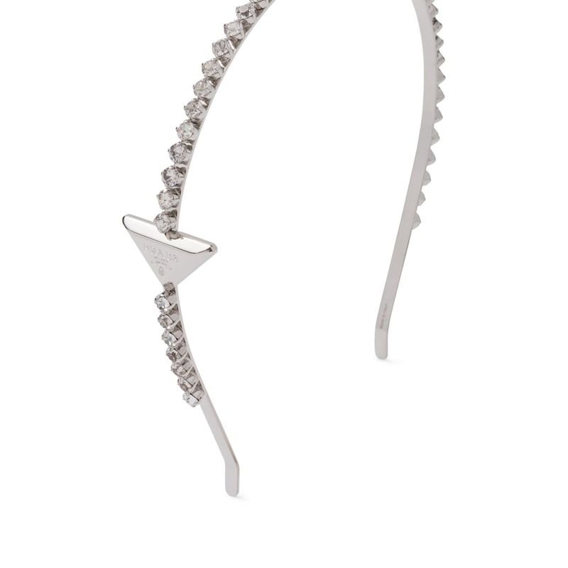 A faixa de cabeça enfeitada da Prada é uma celebração do legado icônico da maison, onde o famoso Triângulo prateado brilha como um símbolo de sofisticação atemporal. Adornada com cristais reluzentes,...
