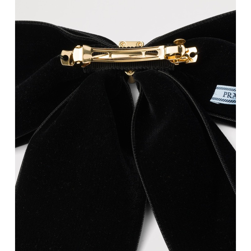 Projetada para oferecer conforto e funcionalidade, a presilha possui um fecho robusto que garante um ajuste seguro, mesmo em penteados complexos. O acabamento artesanal e a qualidade do veludo asseguram durabilidade e um toque de exclusividade, enquanto o design atemporal mantém a peça relevante temporada após temporada. Com esta presilha, a Prada convida você a abraçar a tendência dos laços com um toque de sofisticação inconfundível.