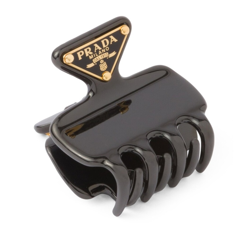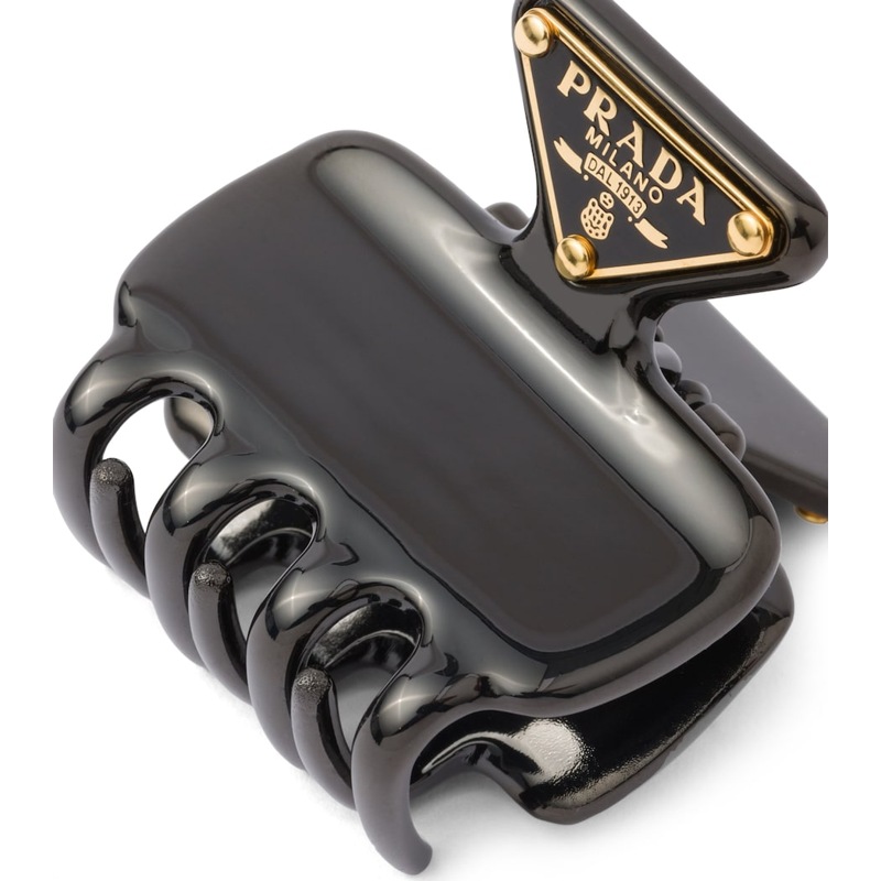 Projetado para oferecer funcionalidade e estilo, o grampo triangular é leve e seguro, com uma construção robusta que assegura durabilidade. O logotipo esmaltado adiciona um toque de exclusividade, tornando este acessório uma peça indispensável para quem busca incorporar a herança da Prada em seu visual. Com esta peça, a maison italiana transforma penteados em expressões de elegância effortless.