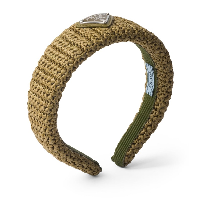 A faixa de cabeça com logotipo de crochê da Prada é uma ode ao luxo descontraído, combinando a estética artesanal do crochê com o icônico Triângulo de metal esmaltado da maison. Confeccionada com fio de efeito ráfia, esta peça exsuda um charme praiano que é perfeito para elevar looks de férias ou adicionar um toque de sofisticação a produções urbanas. Alinhada com a tendência de texturas naturais que dominam as passarelas de 2025, ela é a escolha ideal para quem busca elegância com um toque de verão.