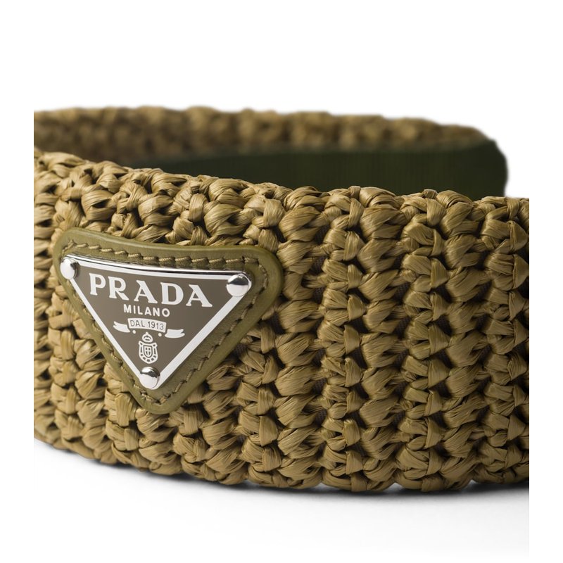 O design desta faixa equilibra funcionalidade e estilo. O crochê leve e respirável garante conforto em dias quentes, enquanto o Triângulo Prada adiciona uma assinatura de prestígio que fala da herança da marca. Seja para um passeio à beira-mar ou um evento ao ar livre, esta faixa mantém os cabelos no lugar com graça, oferecendo uma silhueta que é tanto atemporal quanto contemporânea. É o acessório perfeito para a mulher que deseja infundir seus looks com um toque de glamour sem esforço.