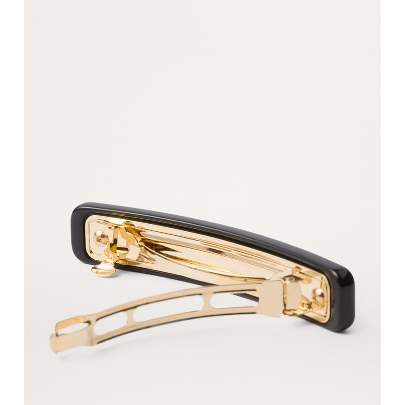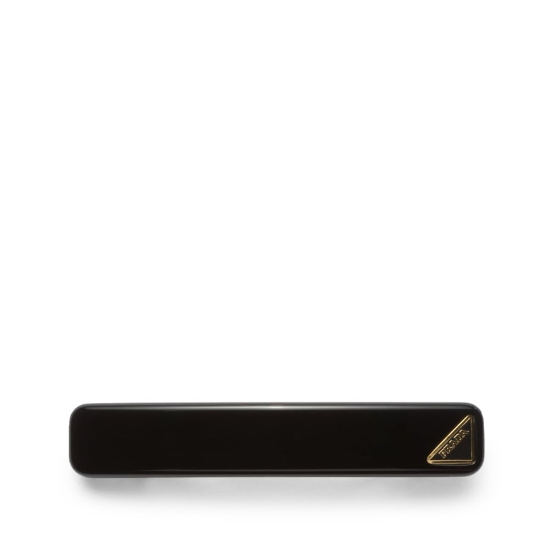 Projetado para oferecer funcionalidade e estilo, o grampo é leve e seguro, com uma construção robusta que assegura durabilidade. O acabamento em plexiglass e o logotipo icônico adicionam um toque de exclusividade, tornando este acessório uma peça indispensável para quem busca incorporar a herança da Prada. Com esta peça, a maison convida você a celebrar a elegância em cada detalhe do seu visual.