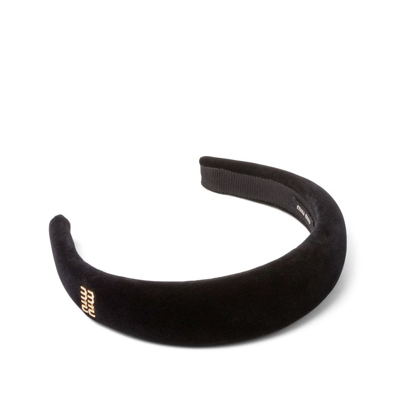 A faixa de cabeça com logotipo de veludo da Miu Miu é uma celebração do espírito jovial e audacioso da marca, com um design oversized que exsuda glamour descontraído. Confeccionada em veludo macio,...