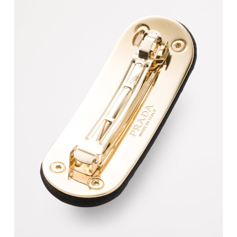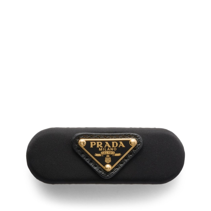 O design minimalista reflete a habilidade da Prada em unir forma e função, com o tecido Re-Nylon proporcionando uma textura única que contrasta com a suavidade dos cabelos. Perfeito para looks urbanos ou ocasiões formais, este grampo adiciona um toque de sofisticação irreverente, evocando a estética Y2K que voltou a dominar a moda. Seja para segurar um coque despojado ou adornar cabelos soltos, esta peça é um must-have para fashionistas conscientes.