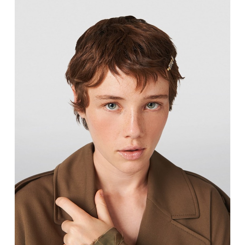 O design minimalista do grampo permite que ele se destaque sem sobrecarregar o look, tornando-o versátil para ocasiões que vão do dia a dia a eventos especiais. Seja para segurar mechas soltas ou complementar um coque despojado, esta peça reflete a habilidade da Miu Miu em criar acessórios que são ao mesmo tempo funcionais e estilosos. O acabamento brilhante do logotipo adiciona um toque de glamour que eleva instantaneamente qualquer penteado.
