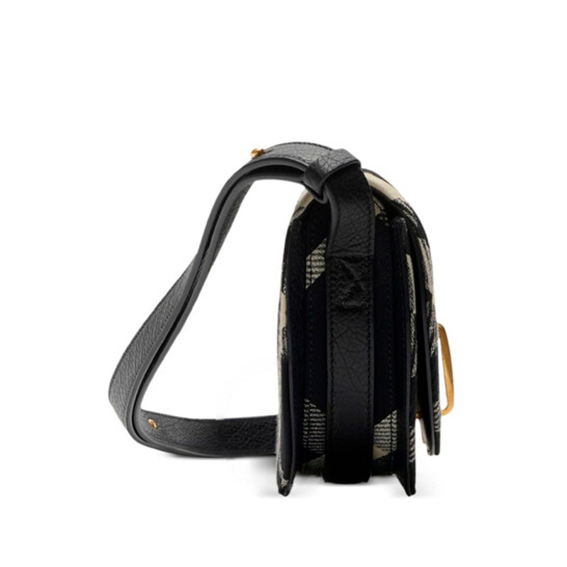 A Burberry Bolsa Shoulder Rocking Horse Jacquard Mini celebra o design de ombro com silhueta que abraça o corpo, pensada para mobilidade. Materiais como jacquard, com alça de ombro.