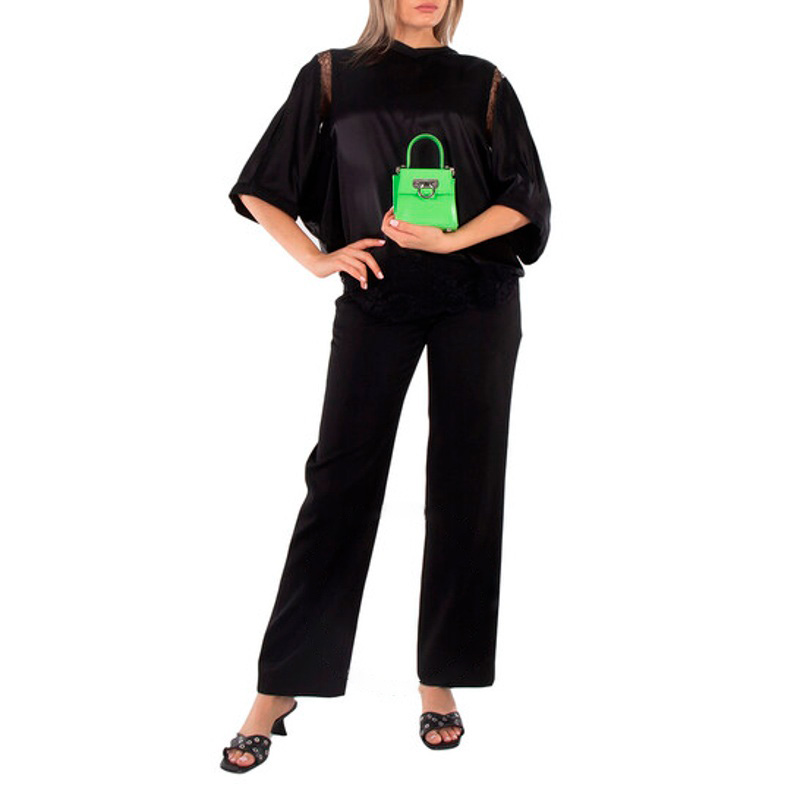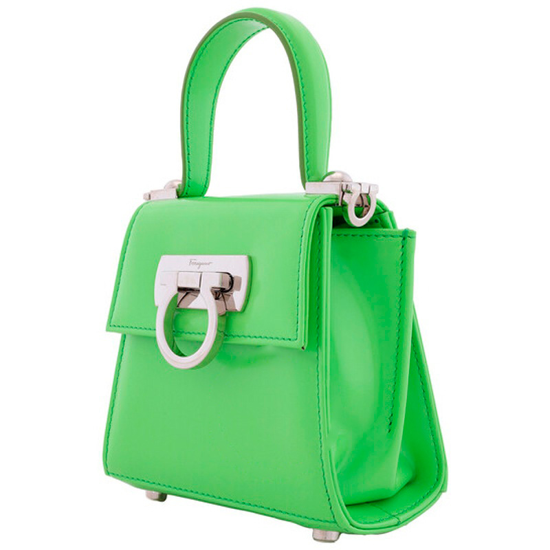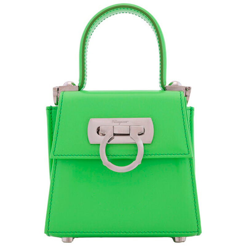 A Ferragamo Bolsa Handle Ladies Green Micro Iconic interpreta o estilo Handle em design de mão, com estrutura gráfica com presença, feminina e firme. Com alça de mão.