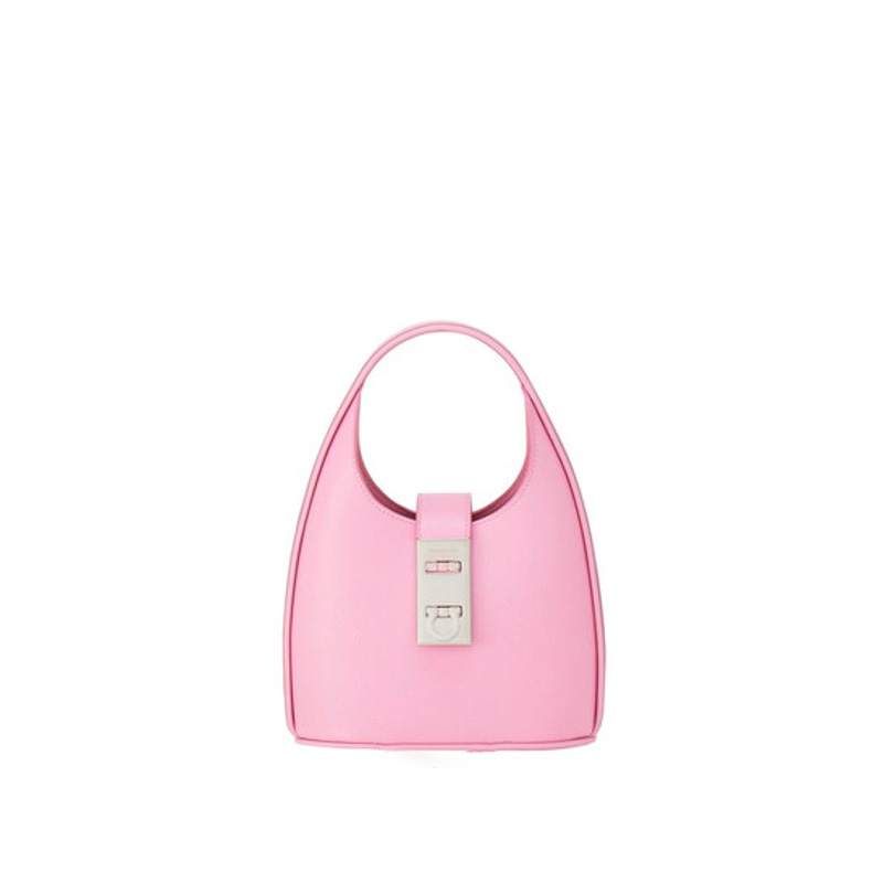 A Ferragamo Bolsa Handle Hobo Mini interpreta o estilo Handle em design de mão, com estrutura gráfica com presença, feminina e firme. Com alça de mão.