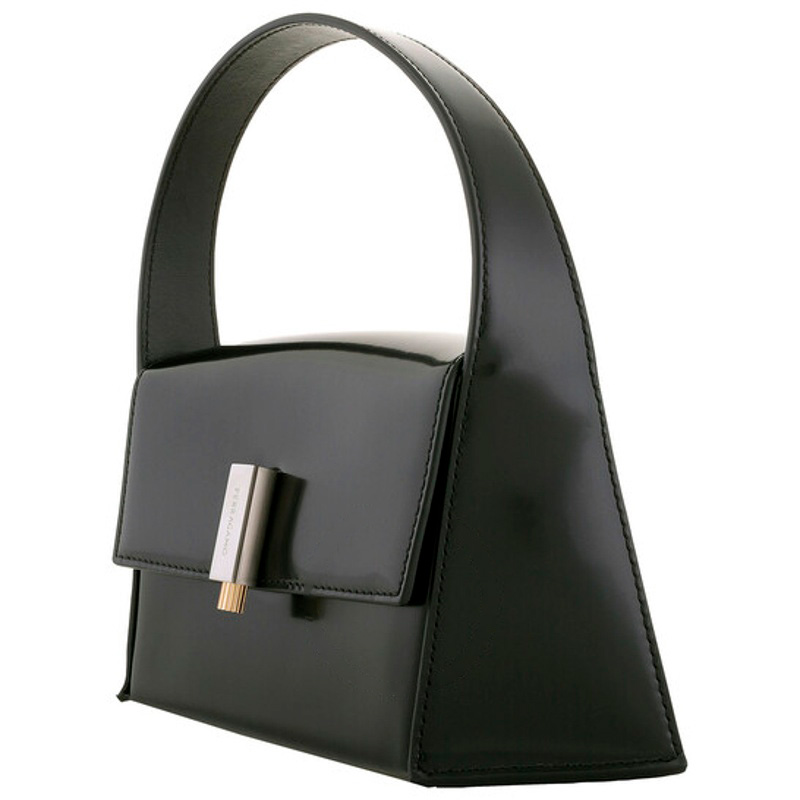 A Ferragamo Bolsa Handle Mini Geometric interpreta o estilo Handle em design de mão, com estrutura gráfica com presença, feminina e firme. Com alça de mão.