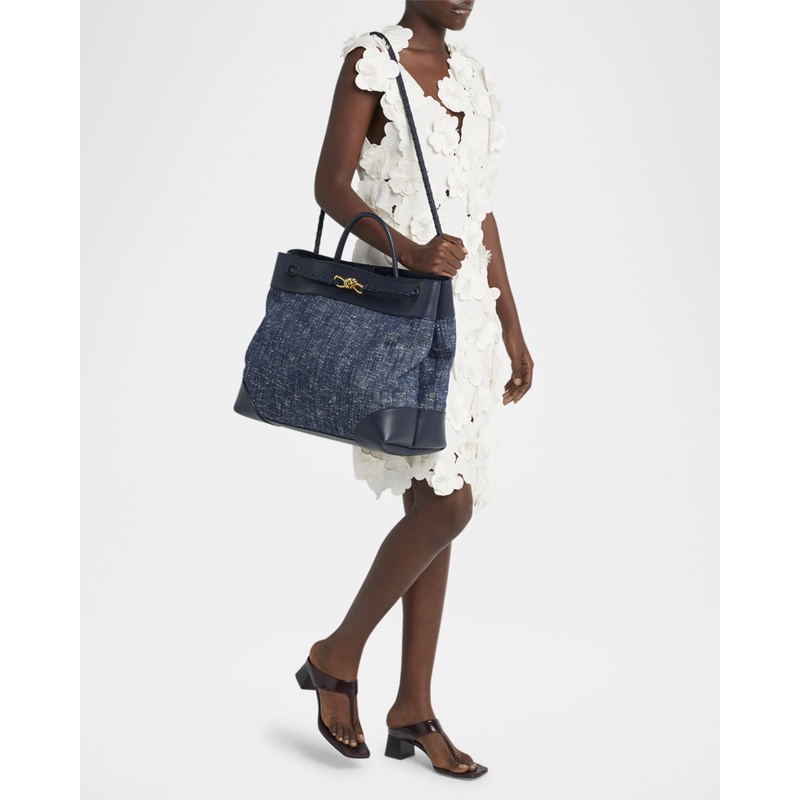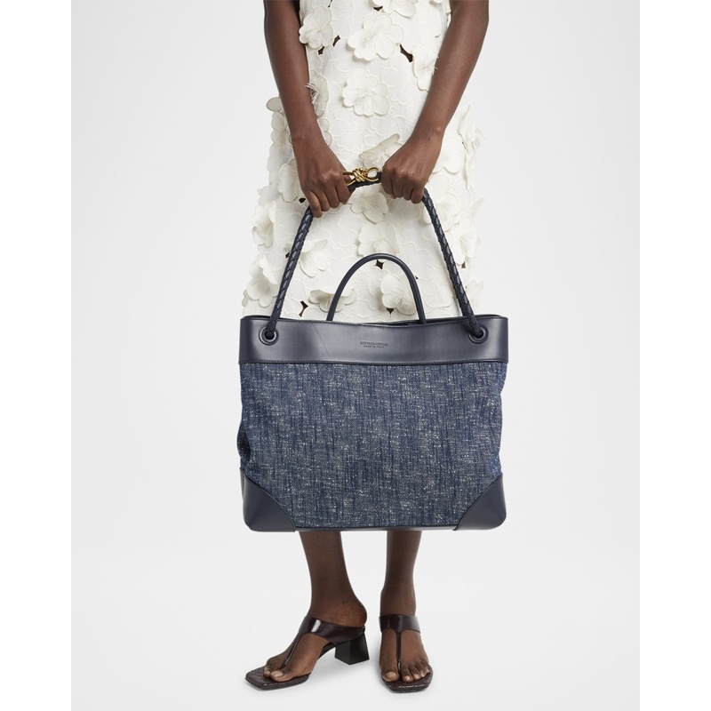 A Bottega Veneta Bolsa Shopper Largeiamo Denim Boucle interpreta o estilo Shopper em design de ombro, com volume generoso e linhas limpas. Com alça de ombro.