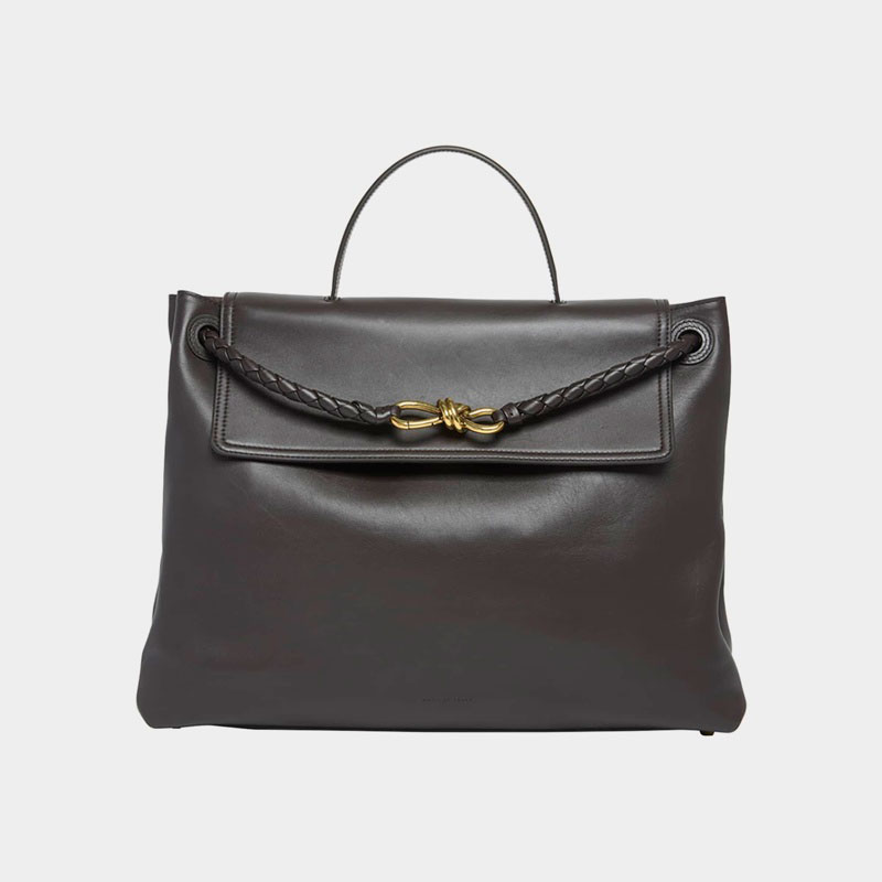 A Bottega Veneta Bolsa Handle Andiamo Large interpreta o estilo Handle em design de mão, com estrutura gráfica com presença, feminina e firme. Com alça de mão.