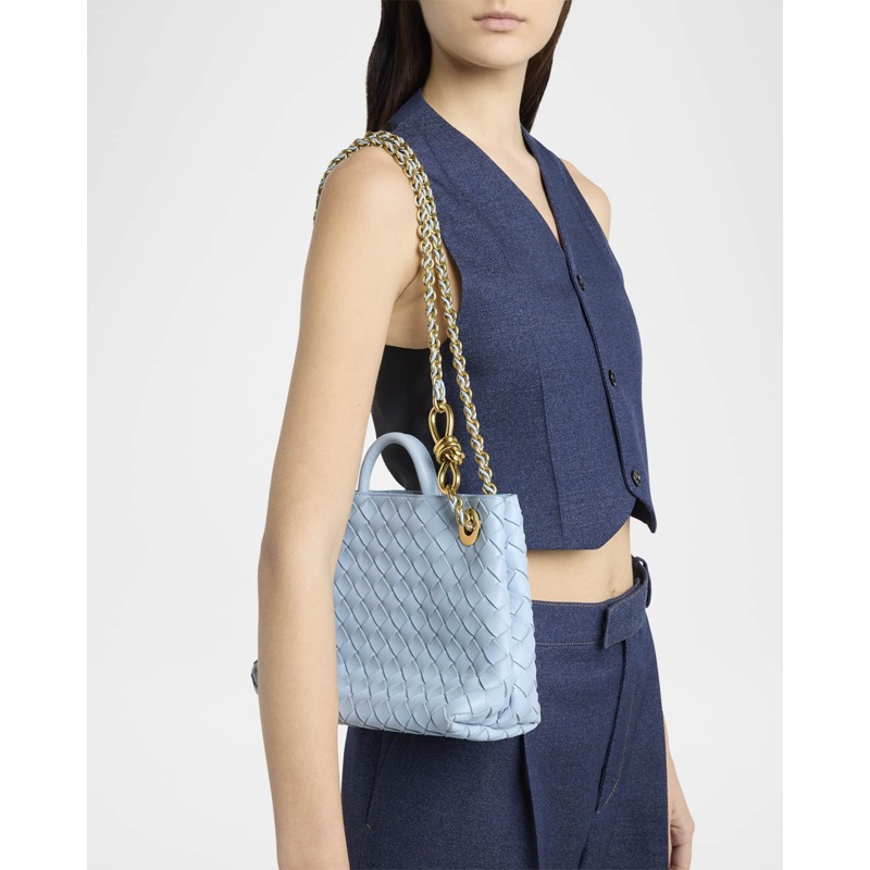 A Bottega Veneta Bolsa Shopper Small Andiamo with Chain Strap interpreta o estilo Shopper em design de ombro, com volume generoso e linhas limpas. Com alça de corrente.Pensada para ritmo...