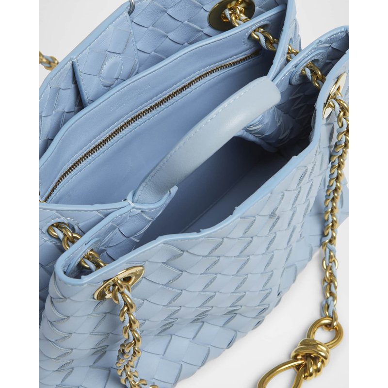 A Bottega Veneta Bolsa Shopper Small Andiamo with Chain Strap interpreta o estilo Shopper em design de ombro, com volume generoso e linhas limpas. Com alça de corrente.