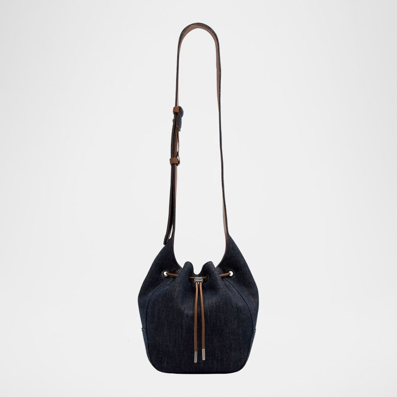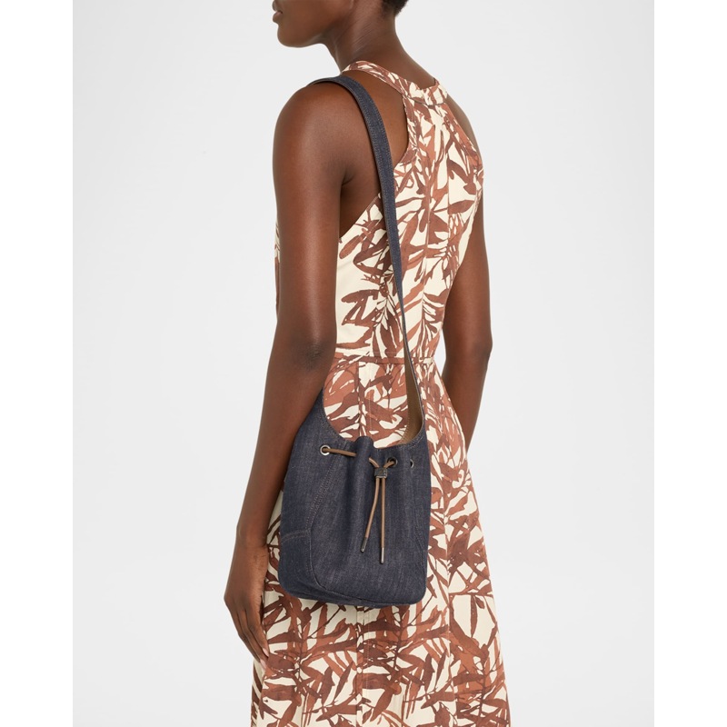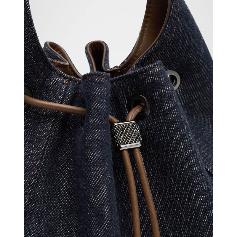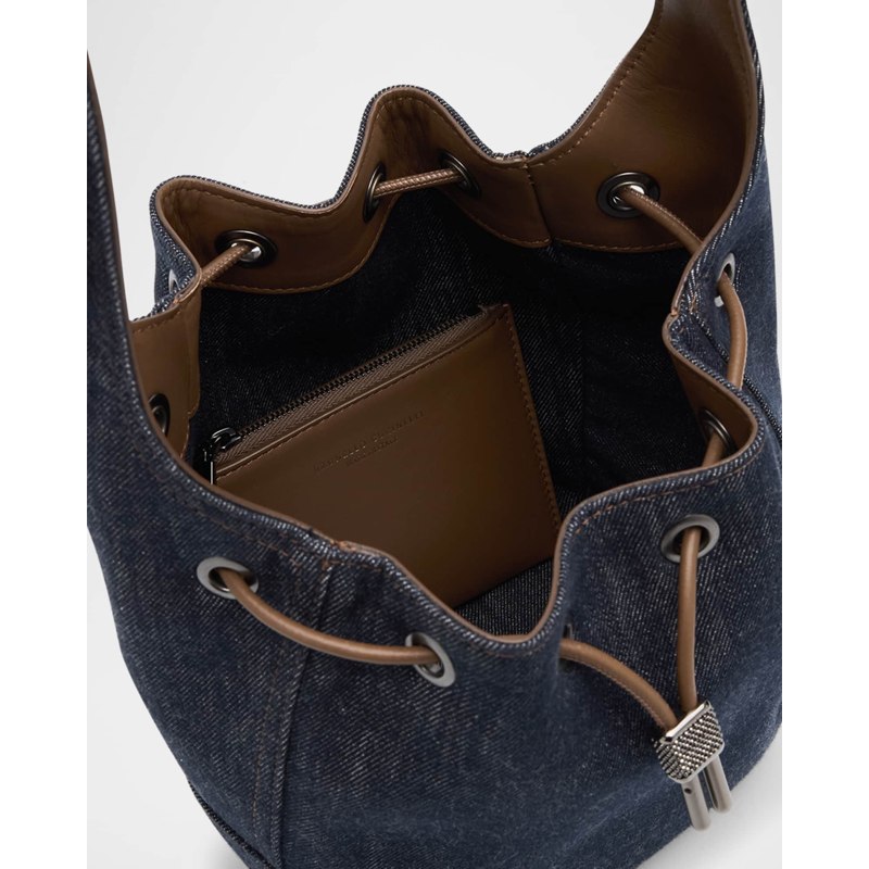 A Brunello Cucinelli Bolsa Bucket Duo Mini Denim Drawstring interpreta o estilo Bucket em design de mão/ombro, com copo cilíndrico com fecho ajustável. Com alça de mão, alça de ombro.