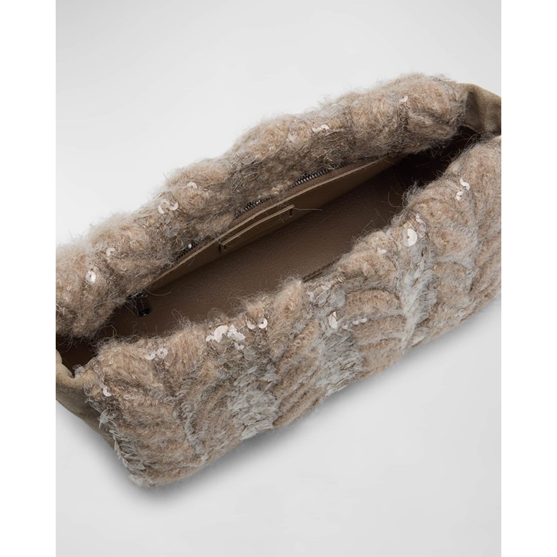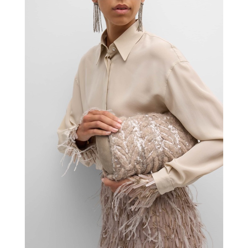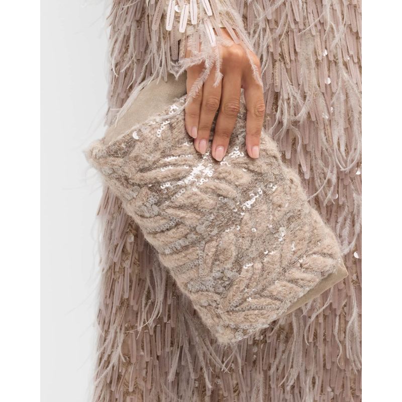 A Brunello Cucinelli Bolsa Clutch Sequined Opera Knit interpreta o estilo Clutch em design de mão, com perfil minimal com foco no acabamento. Com sem alça ou pulseira de mão.Pensada para ritmo...