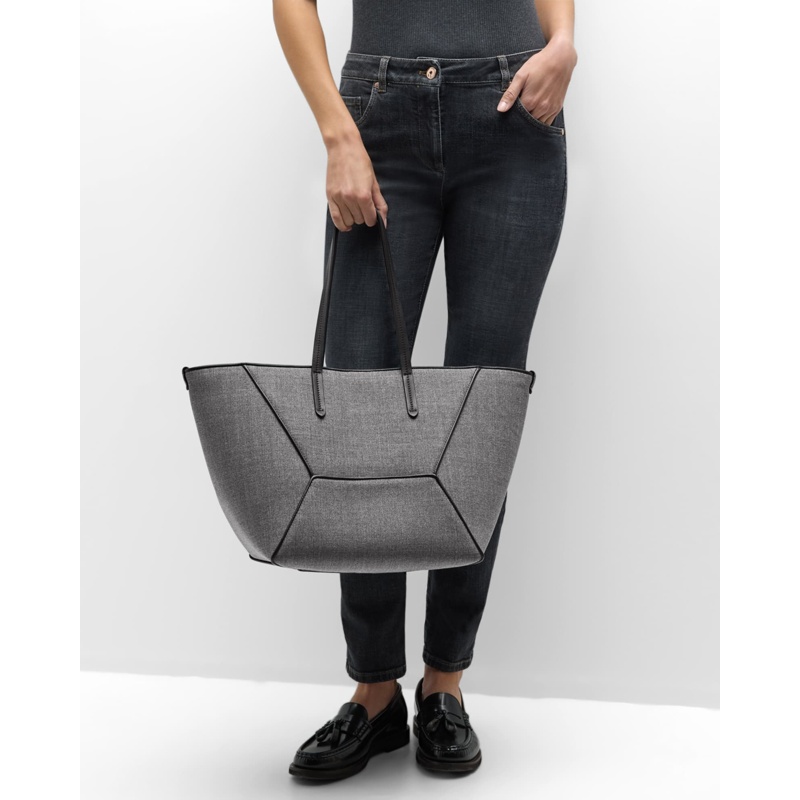 A Brunello Cucinelli Bolsa Shopper BC Duo Medium Wool interpreta o estilo Shopper em design de ombro, com volume generoso e linhas limpas. Com alça de ombro.