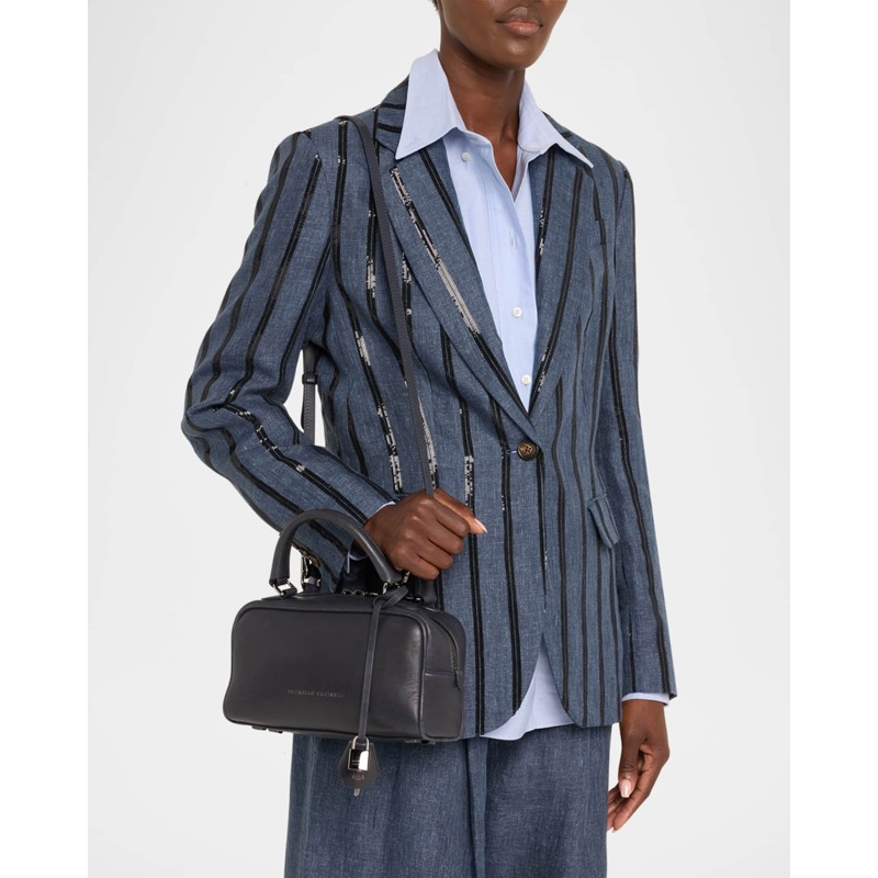 A Brunello Cucinelli Bolsa Handle Medium Glossy Napa Boston interpreta o estilo Handle em design de mão, com estrutura gráfica com presença, feminina e firme. Com alça de mão.Pensada para ritmo...