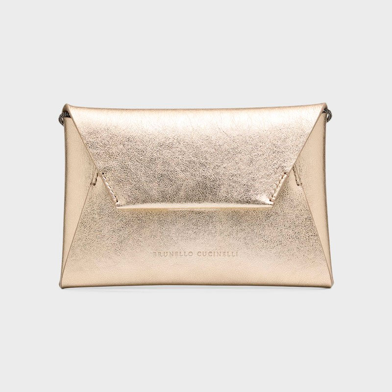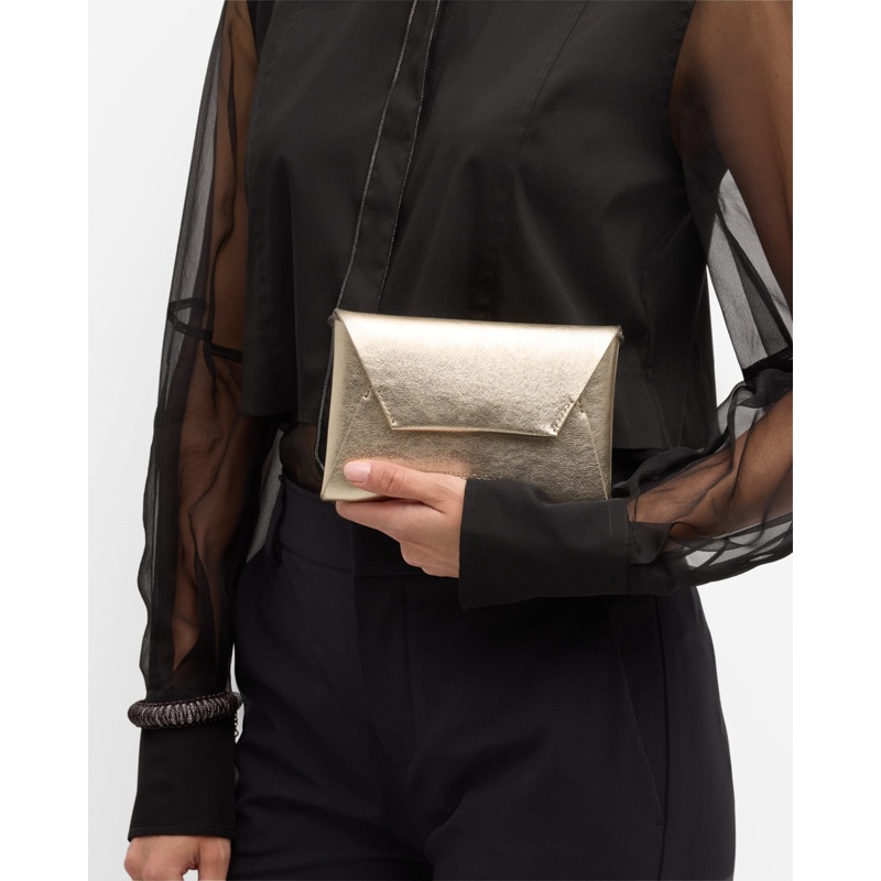 A Brunello Cucinelli Bolsa Crossbody Envelope Flap Metallic interpreta o estilo Crossbody em design de tiracolo, com corpo leve e prático para a cidade. Com alça tiracolo ajustável.