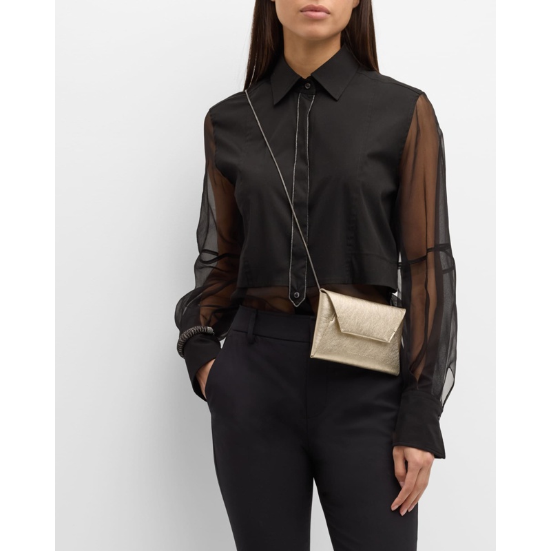 A Brunello Cucinelli Bolsa Crossbody Envelope Flap Metallic interpreta o estilo Crossbody em design de tiracolo, com corpo leve e prático para a cidade. Com alça tiracolo ajustável.Pensada para ritmo...