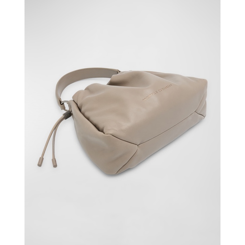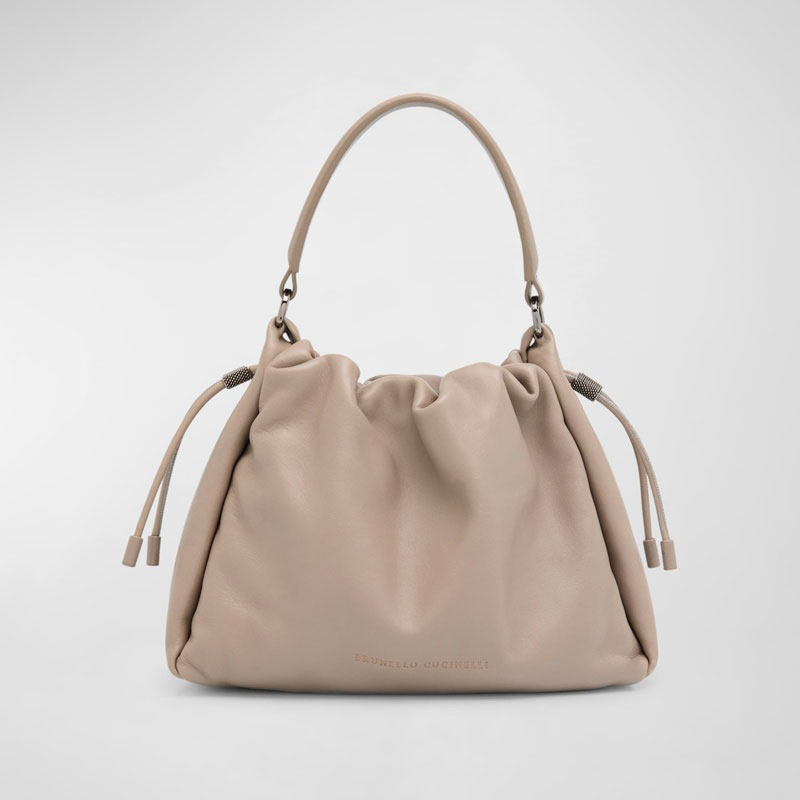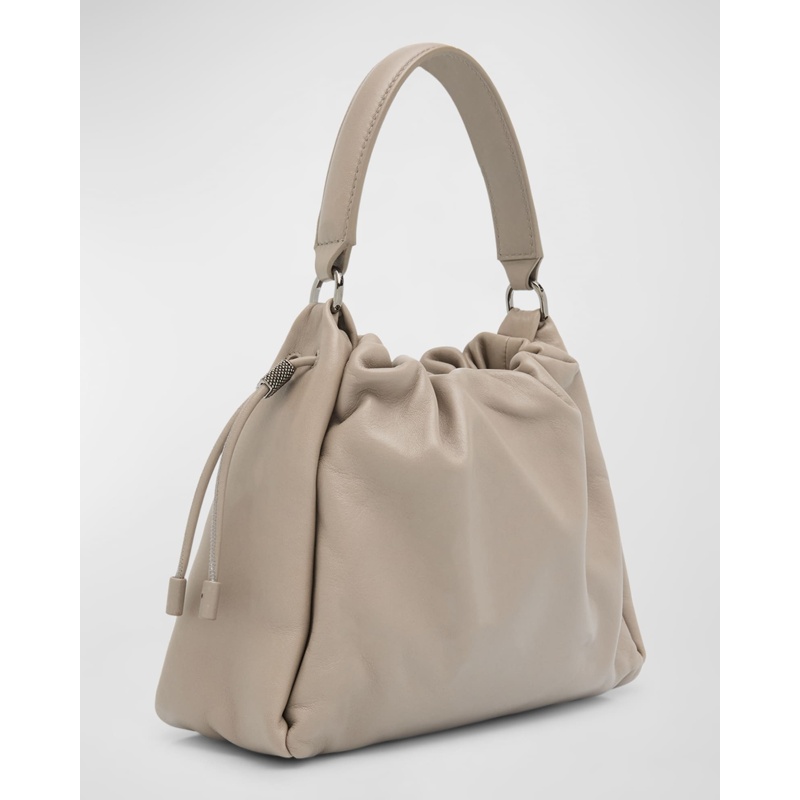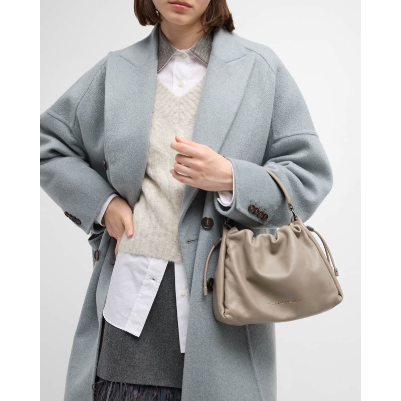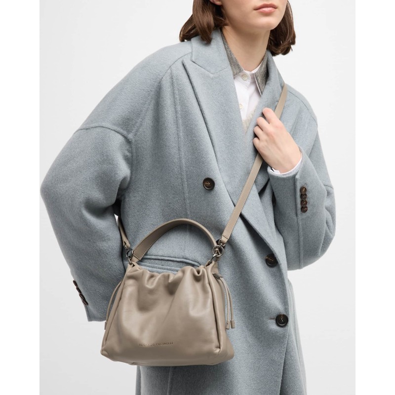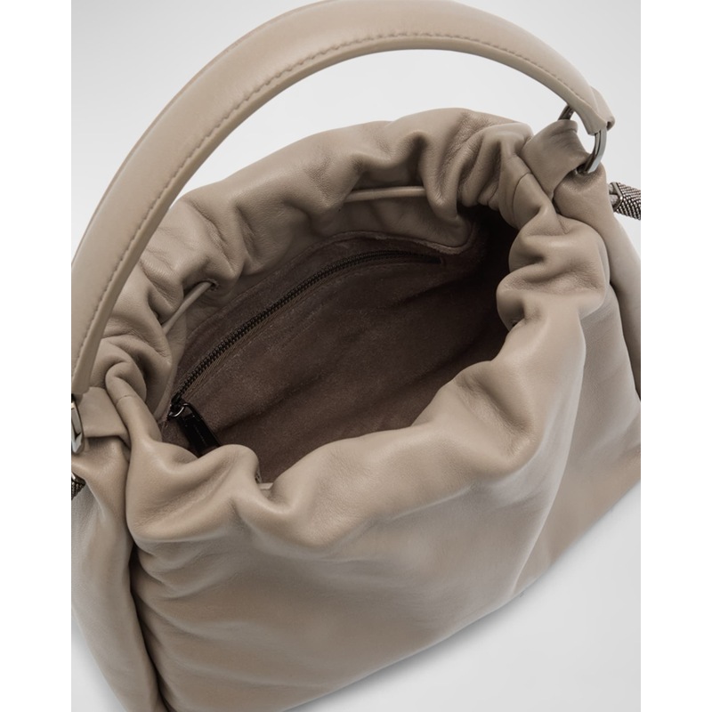A Brunello Cucinelli Bolsa Handle Mini Drawstring Lambskin interpreta o estilo Handle em design de mão, com estrutura gráfica com presença, feminina e firme. Com alça de mão.