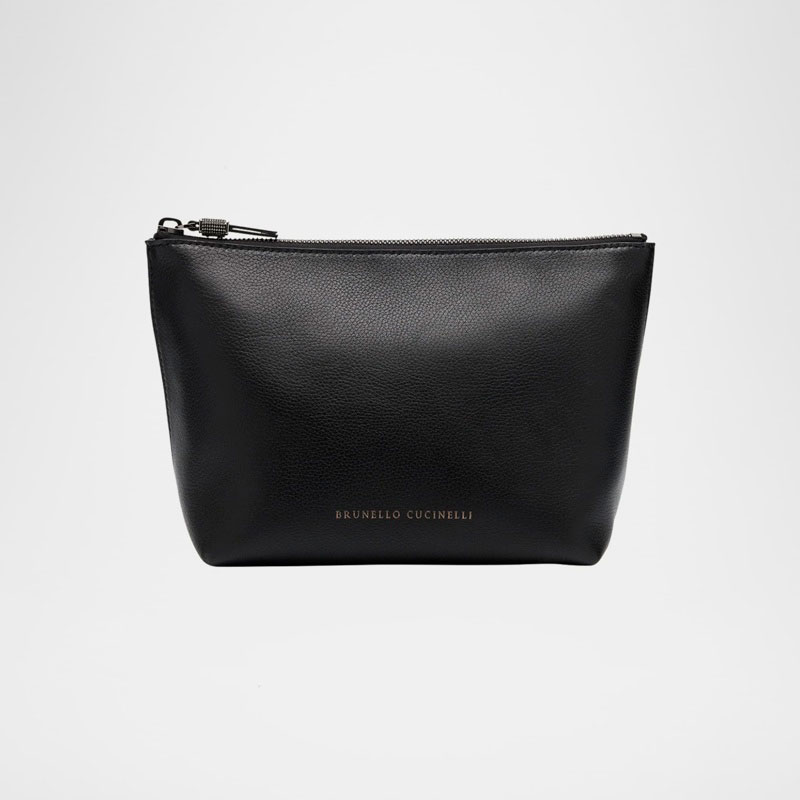 A Brunello Cucinelli Bolsa Clutch Zip Lamb Makeup interpreta o estilo Clutch em design de mão, com perfil minimal com foco no acabamento. Com sem alça ou pulseira de mão.