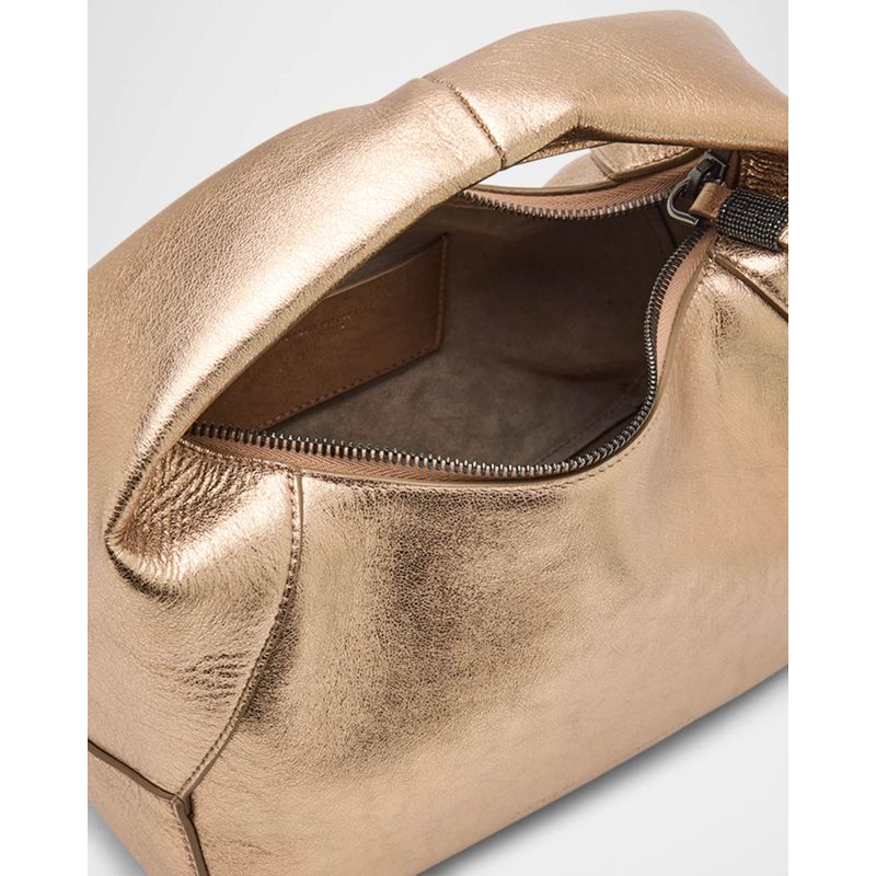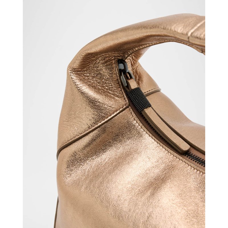 A Brunello Cucinelli Bolsa Handle Metallic interpreta o estilo Handle em design de mão, com estrutura gráfica com presença, feminina e firme. Com alça de mão.