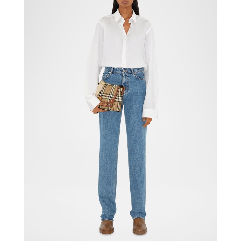 A Burberry Bolsa Shoulder Note Medium Check interpreta o estilo Shoulder em design de ombro, com silhueta que abraça o corpo, pensada para mobilidade. Com alça de ombro.