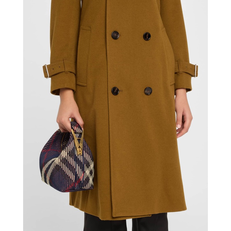 A Burberry Bolsa Handle Peg Clip Check interpreta o estilo Handle em design de mão, com estrutura gráfica com presença, feminina e firme. Com alça de mão.