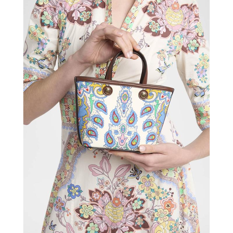 A Etro Bolsa Shopper Mini Essential Printed Canvas interpreta o estilo Shopper em design de ombro, com volume generoso e linhas limpas. Materiais como canvas, com alça de ombro.