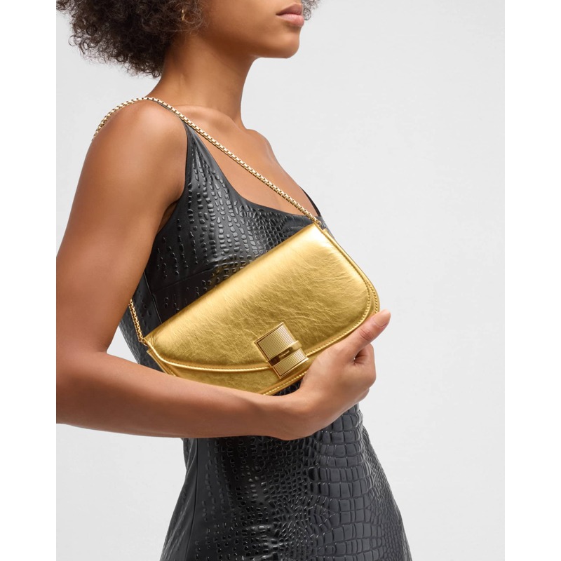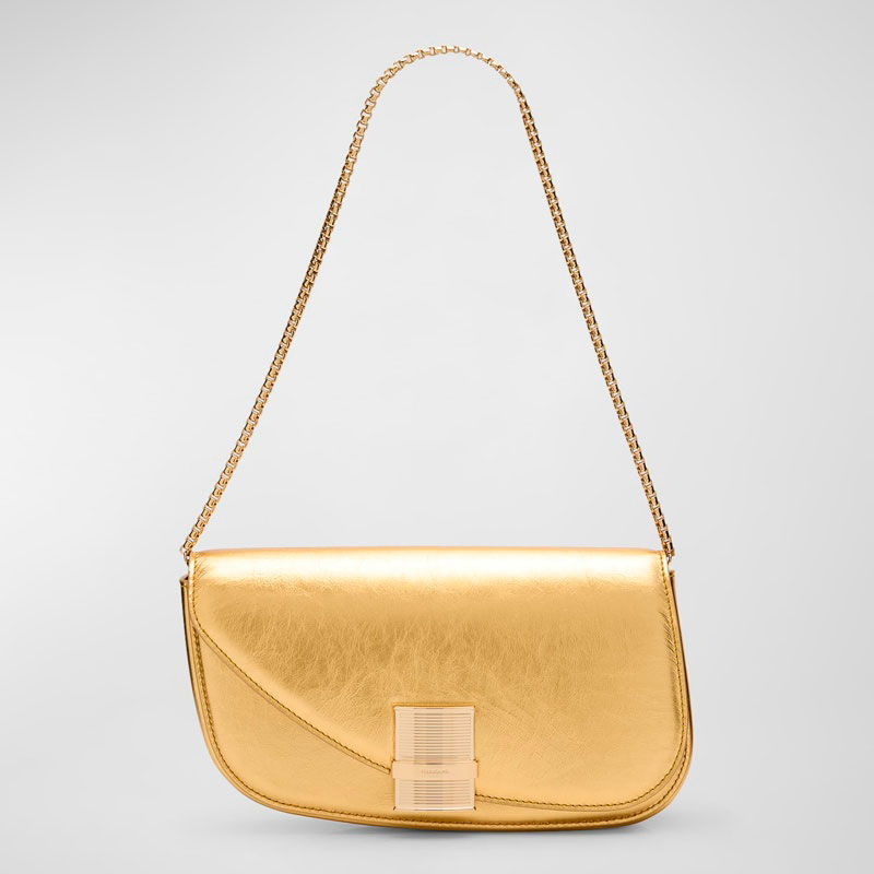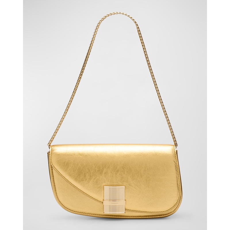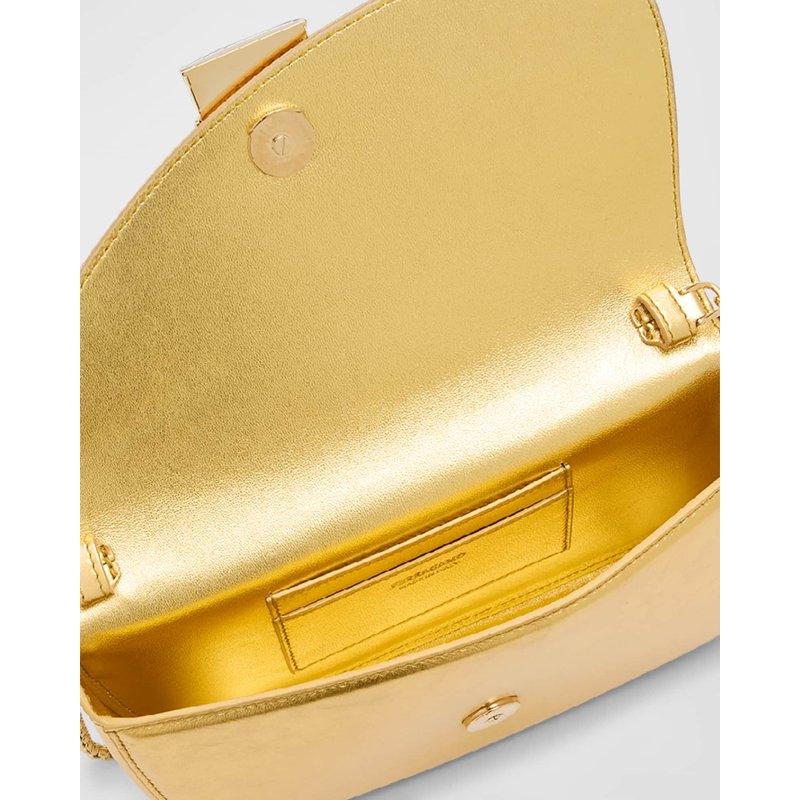 A Ferragamo Bolsa Shoulder Fiamma Metallic interpreta o estilo Shoulder em design de ombro, com silhueta que abraça o corpo, pensada para mobilidade. Com alça de ombro.