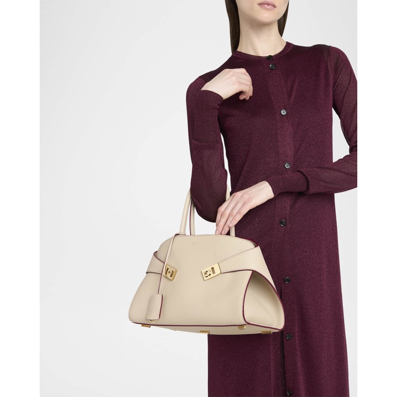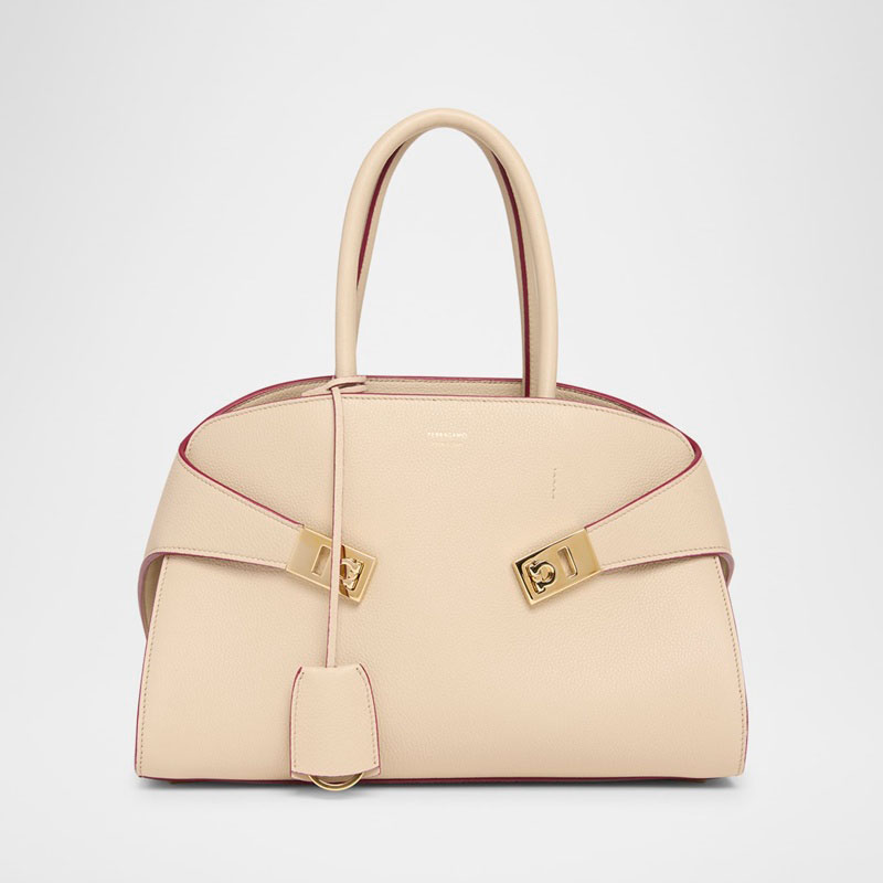 A Ferragamo Bolsa Handle Medium Hug interpreta o estilo Handle em design de mão, com estrutura gráfica com presença, feminina e firme. Com alça de mão.