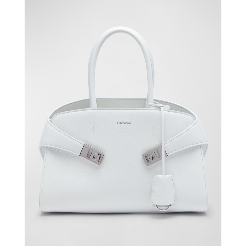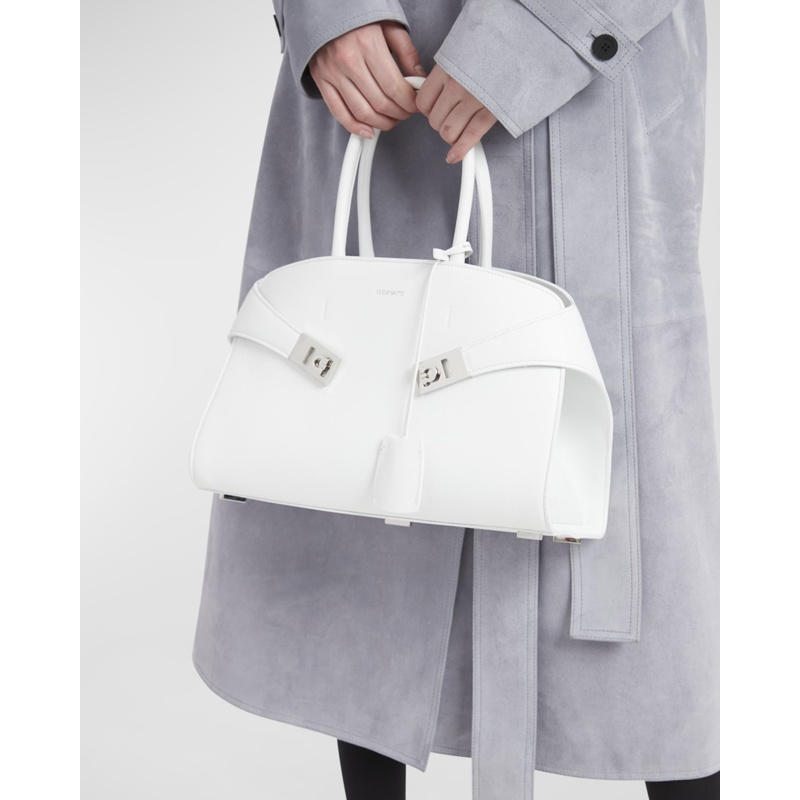 A Ferragamo Bolsa Handle Small Hug interpreta o estilo Handle em design de mão, com estrutura gráfica com presença, feminina e firme. Com alça de mão.
