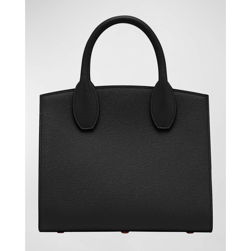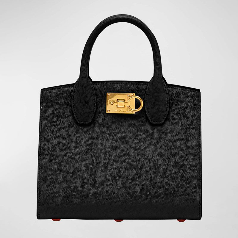 A Ferragamo Bolsa Handle Studio Box Mini interpreta o estilo Handle em design de mão, com estrutura gráfica com presença, feminina e firme. Com alça de mão.