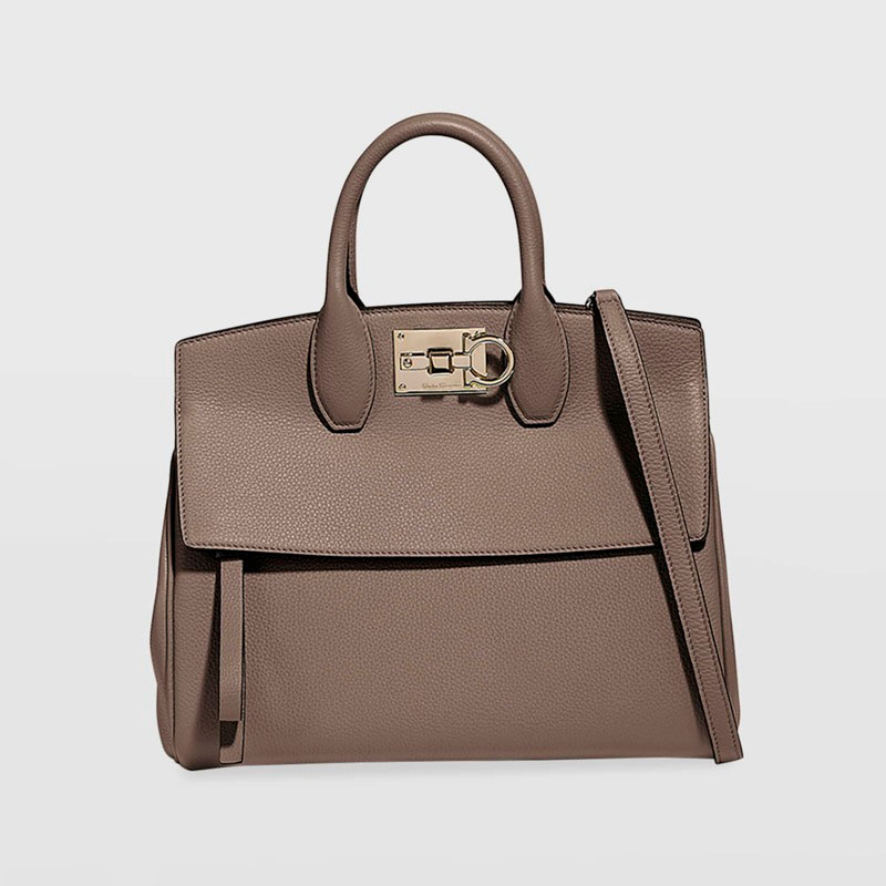 A Ferragamo Bolsa Handle Studio Small Satchel interpreta o estilo Handle em design de mão, com estrutura gráfica com presença, feminina e firme. Com alça de mão.