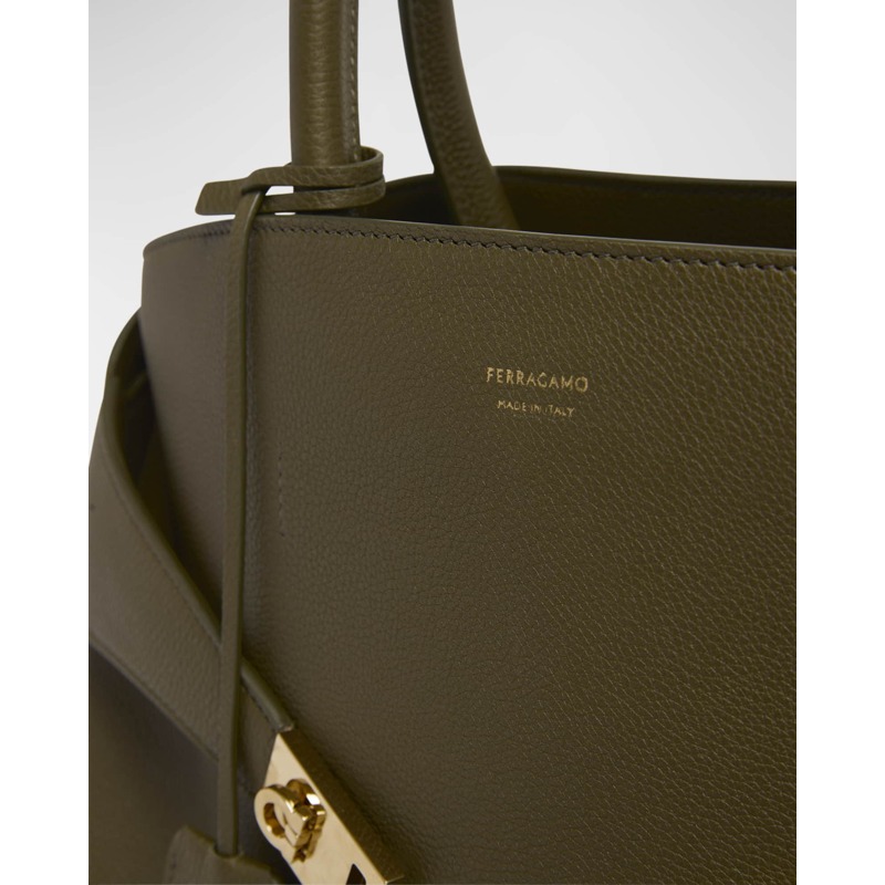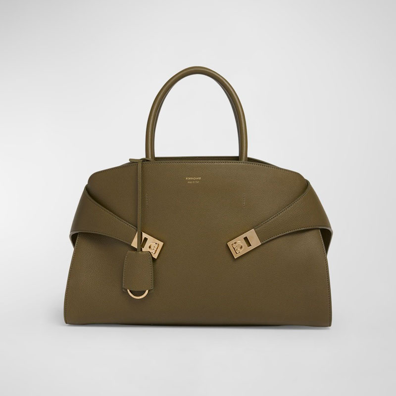 A Ferragamo Bolsa Handle Small Hug interpreta o estilo Handle em design de mão, com estrutura gráfica com presença, feminina e firme. Com alça de mão.