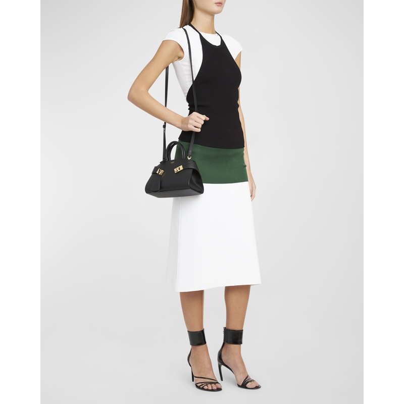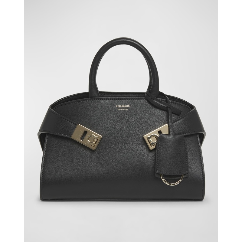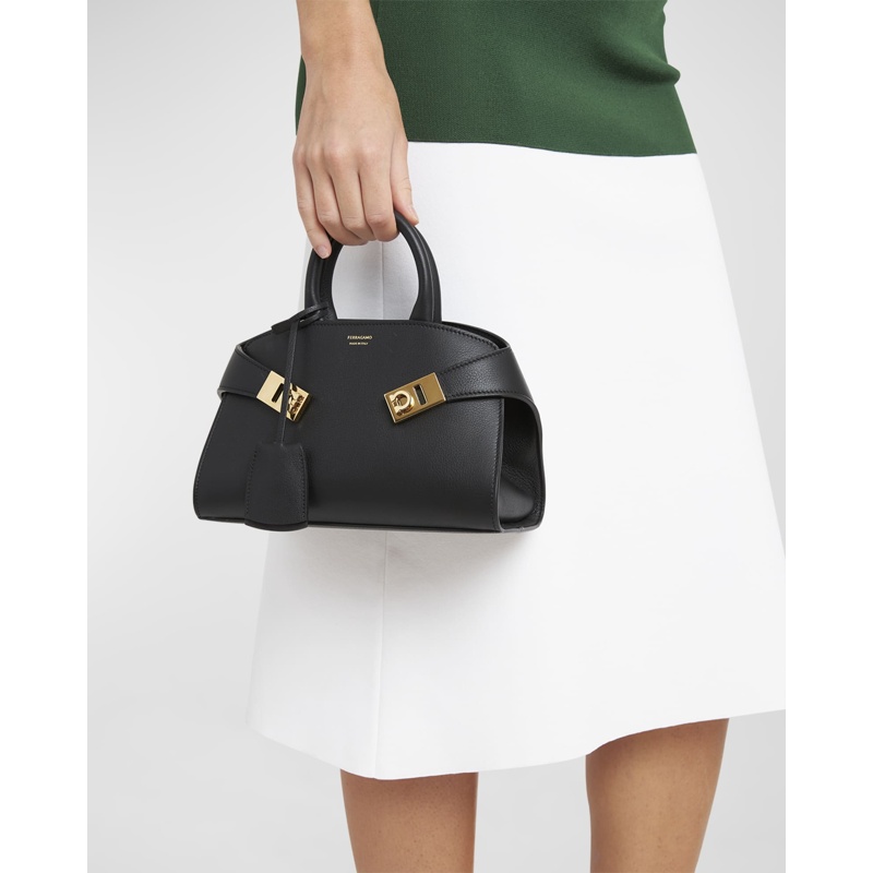 A Ferragamo Bolsa Handle Mini Hug interpreta o estilo Handle em design de mão, com estrutura gráfica com presença, feminina e firme. Com alça de mão.