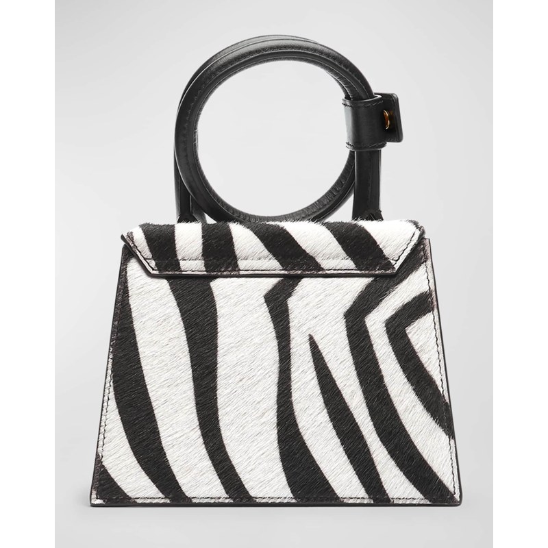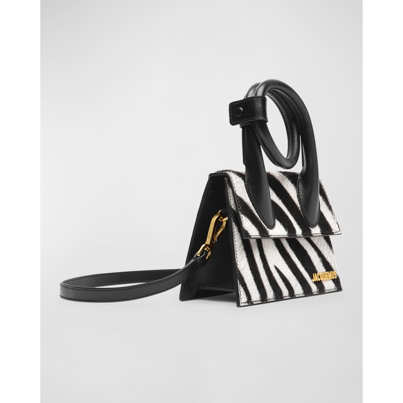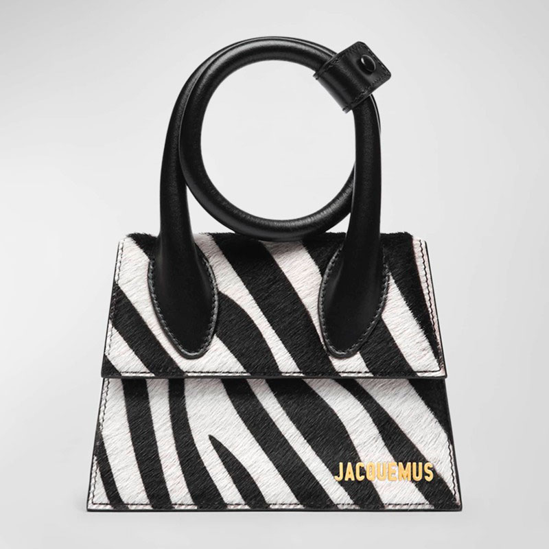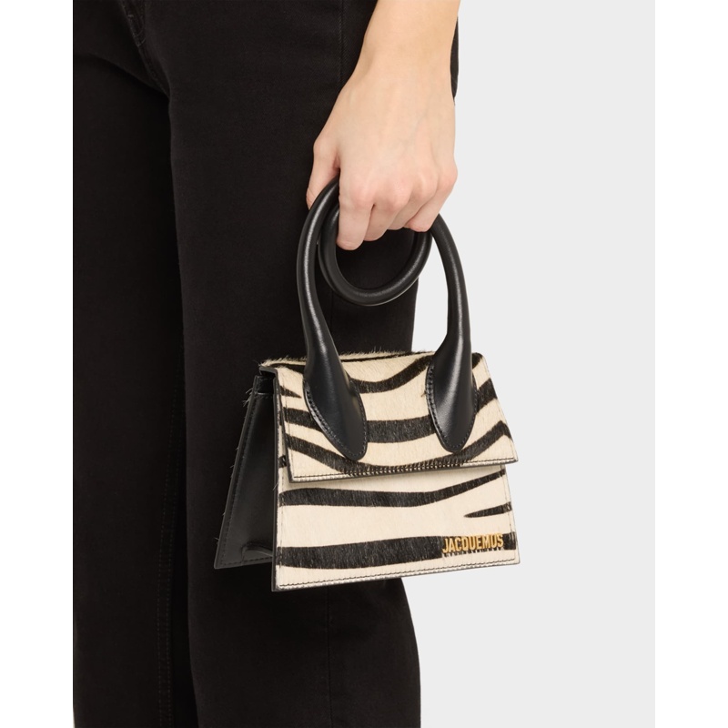 A Jacquemus Bolsa Handle Le Chiquito Noeud Zebra Printed interpreta o estilo Handle em design de mão, com estrutura gráfica com presença, feminina e firme. Com alça de mão.