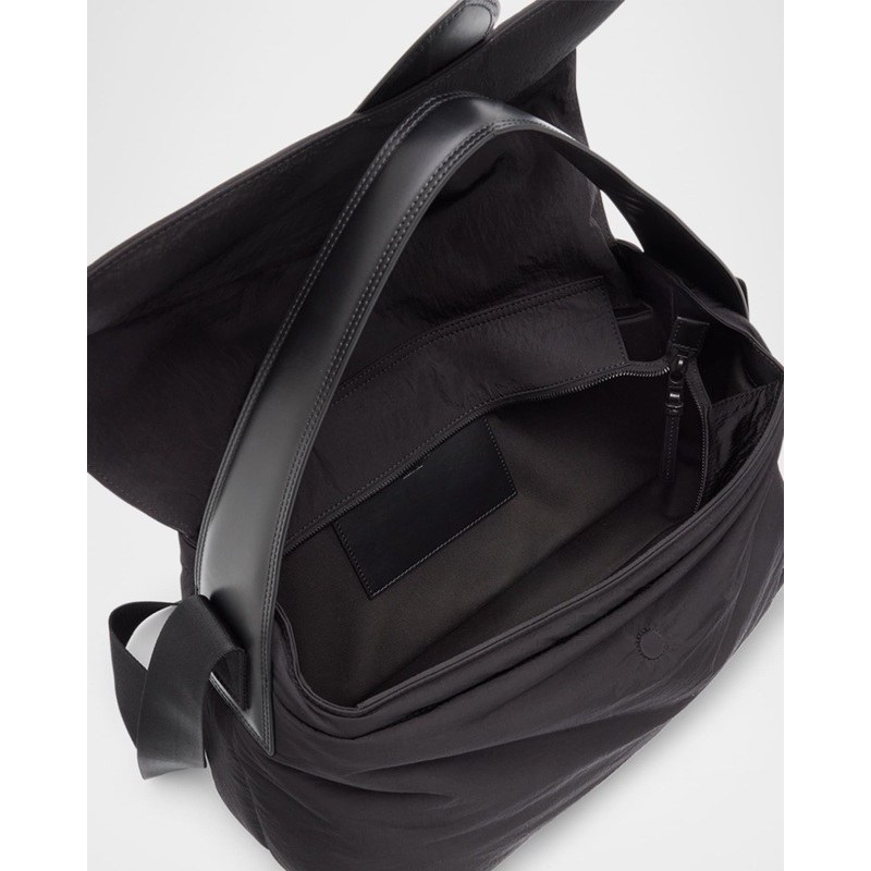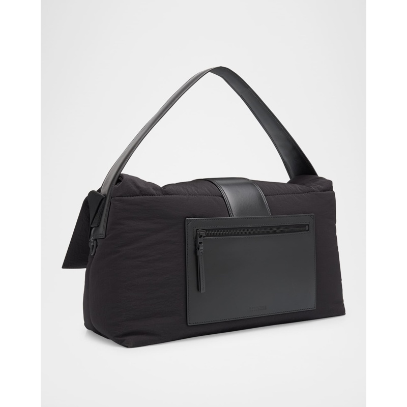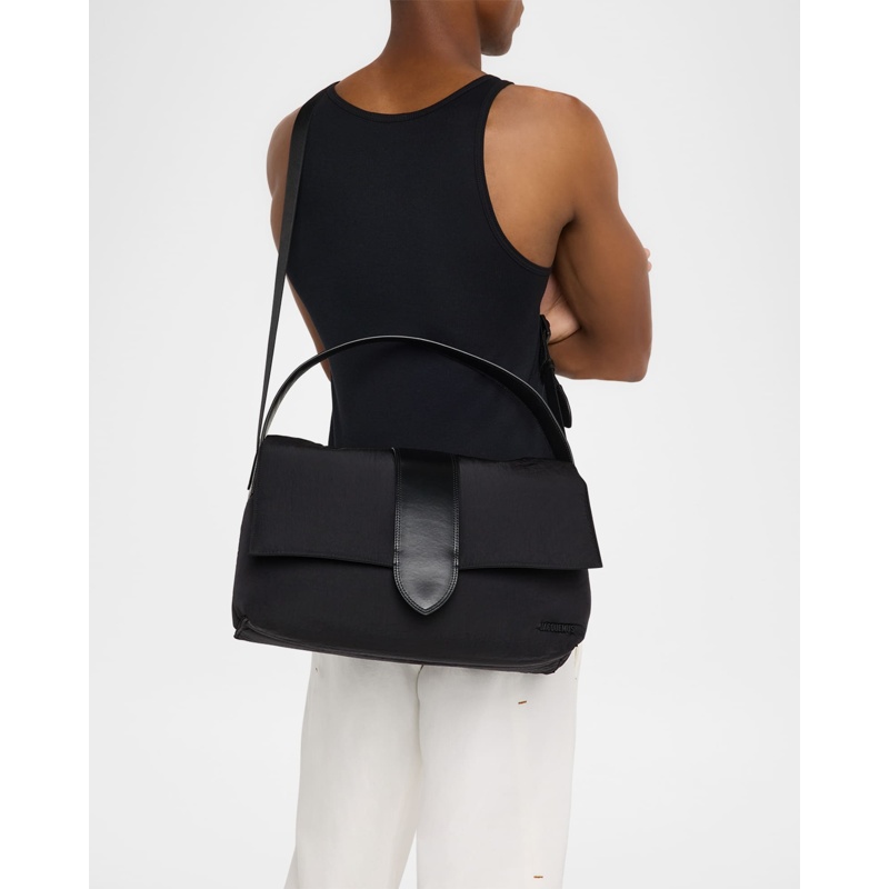 A Jacquemus Bolsa Messenger Bambino Padded Nylon interpreta o estilo Messenger em design de tiracolo, com figura urbana com tampa e praticidade. Materiais como nylon, com alça tiracolo ajustável.