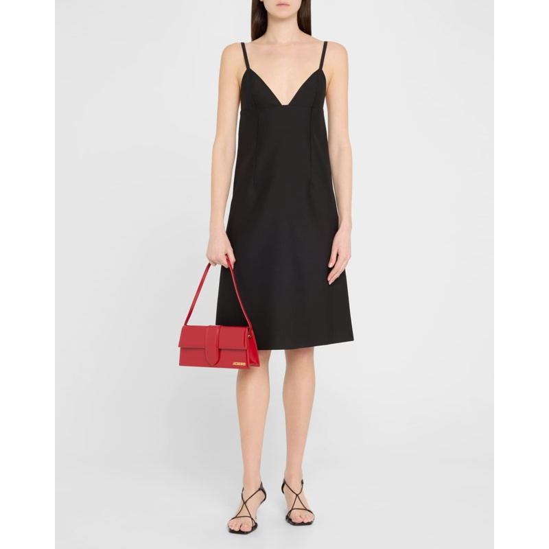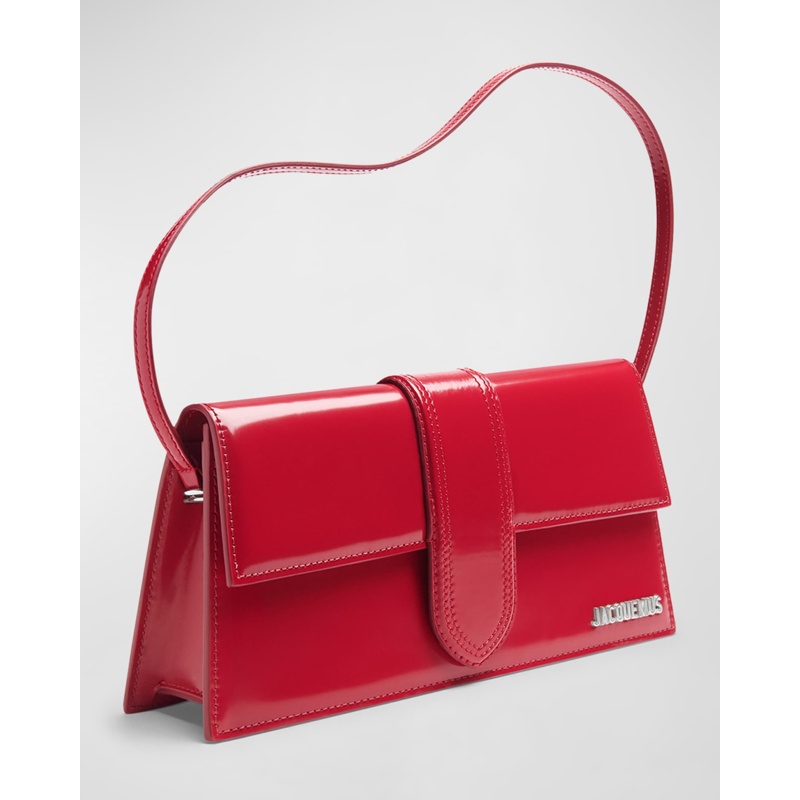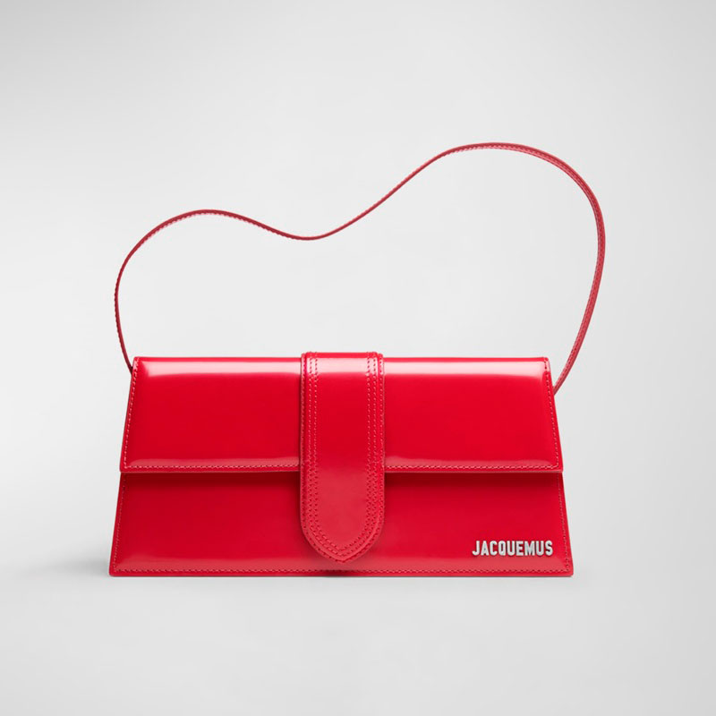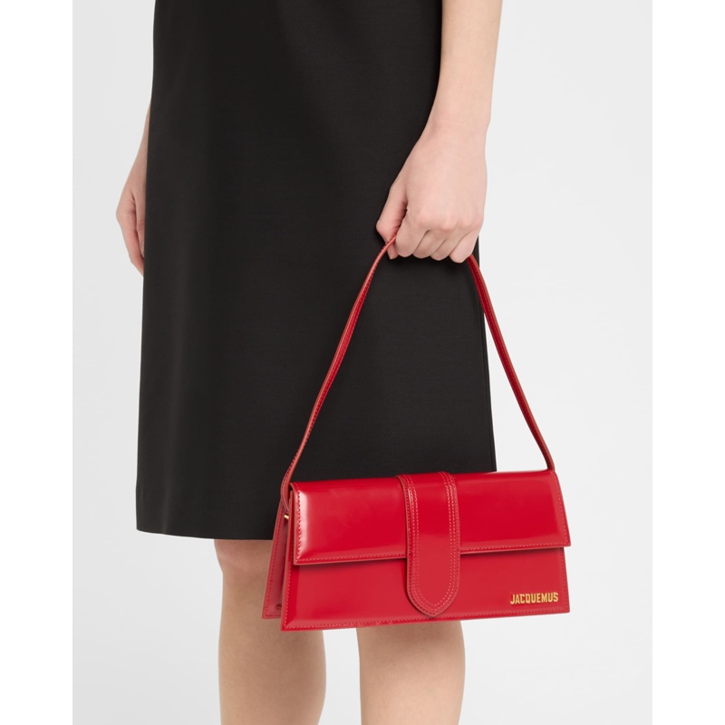 A Jacquemus Bolsa Handle Le Bambino Long interpreta o estilo Handle em design de mão, com estrutura gráfica com presença, feminina e firme. Com alça de mão.